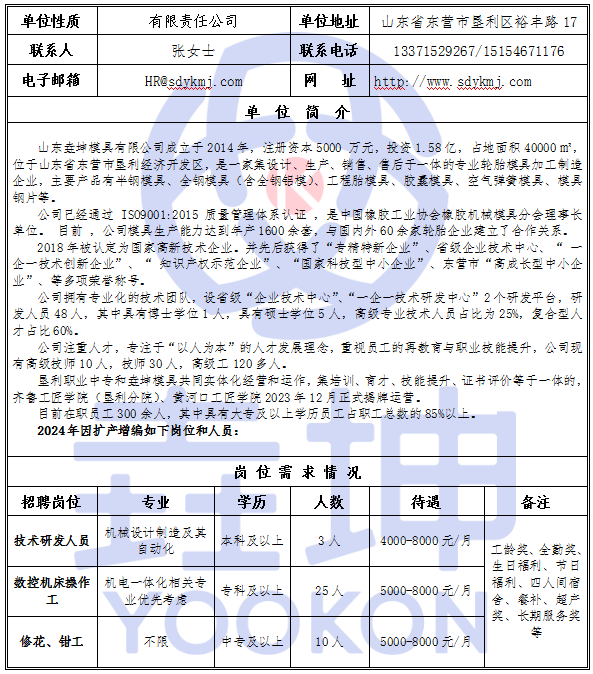 山东垚坤模具有限公司,因扩产增编,现招聘技术研发、生产、质检人员若干名,