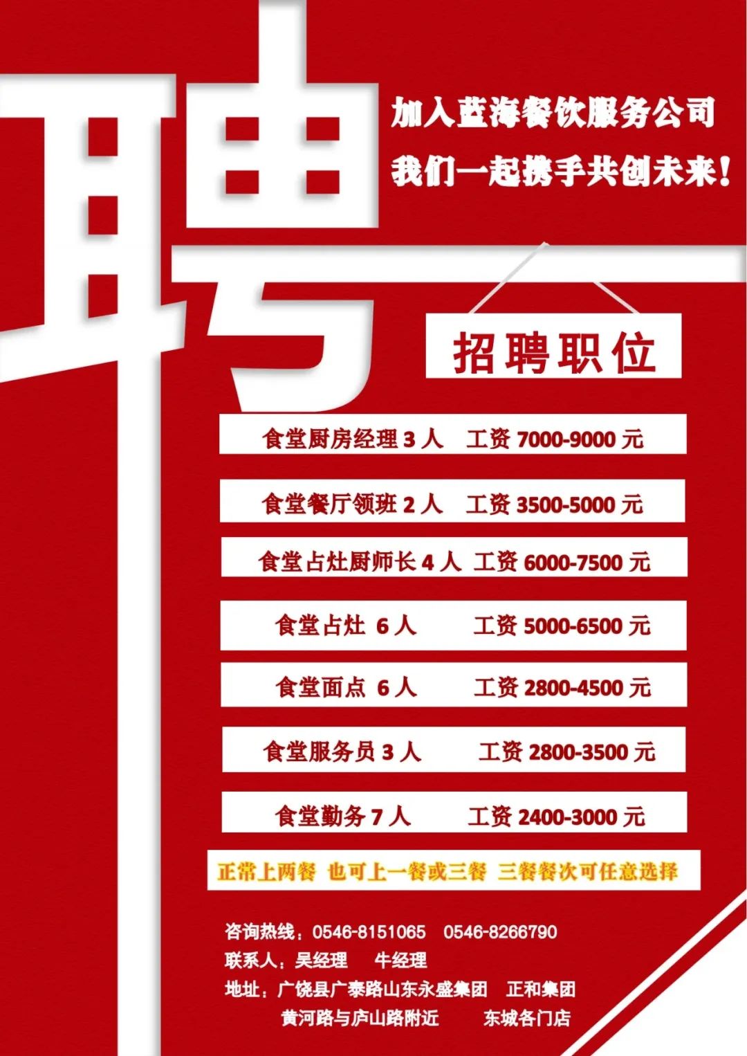 东城东三路银座喜家德招聘