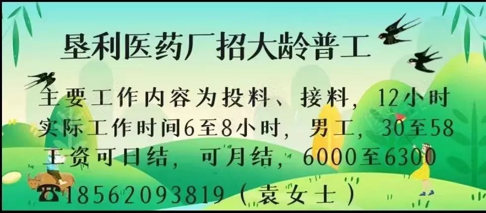 岗位要求:65周岁以内,身体健康、干活麻利、听从负责人分配及安排;