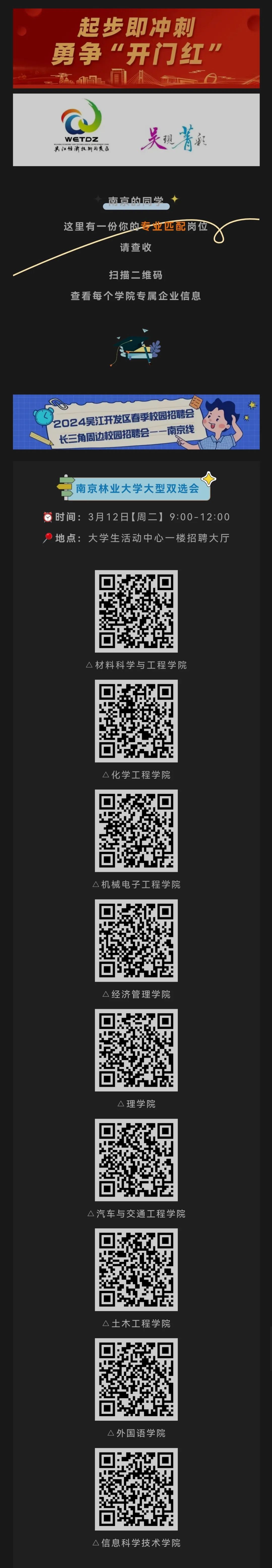 组团招聘| “吴现菁彩”2024年吴江开发区春季校园招聘会——南京林业大学专场