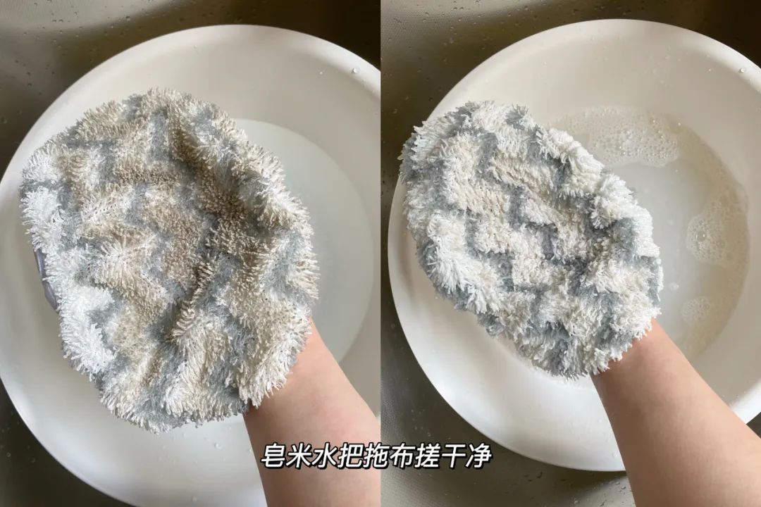 我昨天才拿抹布擦过,今天用这个配合洗洁精水一拖,又拖起来这么多脏东西。