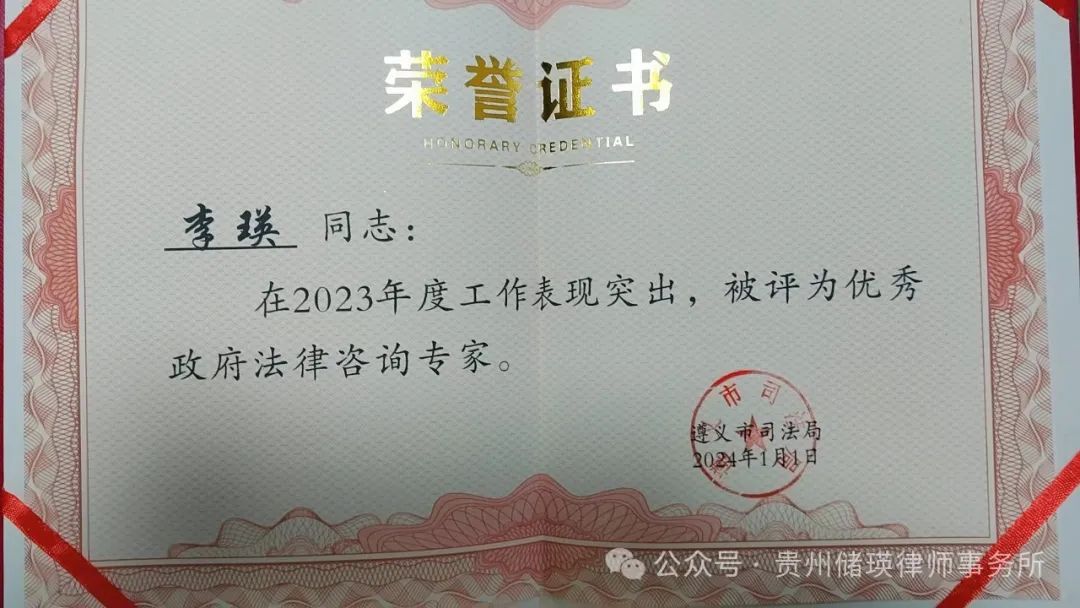 贵州储瑛律师事务所成立于2017年10月,位于遵义市播州区侨龙财智国际写字楼C座612至617室,办公面积530平方米(律所自购)。本所现有执业律师八名、专家成员两名。本所实行公司化管理,致力于“专业化、团队化、精品化”发展,全体成员秉持“专业化服务当事人,高质量维护当事人”的理念,敬业尽责,热忱细致,已构造一支独立作战能力强,团队协作效率高的具有较高专业水平、业务精益求精的律师团队。本所具有中国证监会审核的证券业从业资格,现担任三十余家政府机构及企业法律顾问,承办业务主要是公司、企业债券发行、股权收购、企业重组、行政诉讼与调解及各类民商事纠纷等。近七年来,本所承办各类民商事案件(诉讼或仲裁)1000多件、行政诉讼案件100多件;为顾问单位审查修改合同、出具合同审查意见、出具法律意见书等20000多份;参与地方立法12项、政府行政规章8项。律所的优质法律服务获得业界和当事人广泛好评,被遵义市播州区司法局授予“遵义市播州区2021年度法律服务先进单位”,被贵州省律师行业党委授予“贵州省律师行业2022年度先进党组织”。