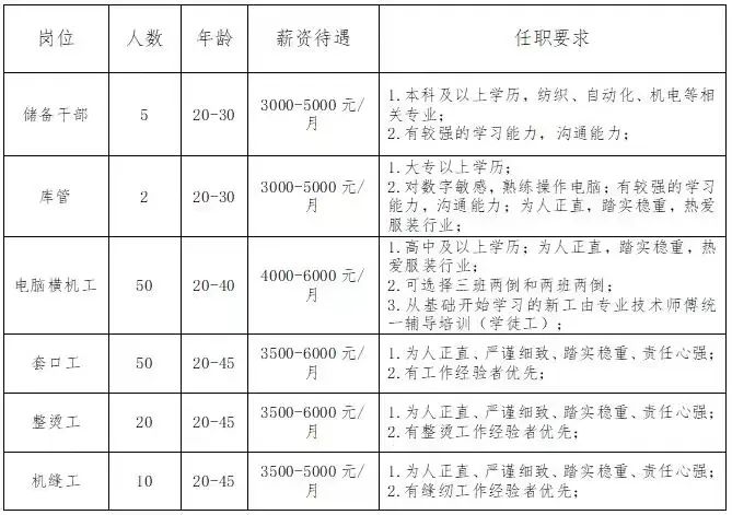 宁夏新中绒羊绒服装有限公司成立于2021年,由浙江爵派尔集团收购原中银绒业针织板块,公司传承原中银绒业针织工艺技术,形成以羊绒、羊毛等天然动植物纤维为主要原料,集粗细全针型开发、设计、生产、销售为为一体的针织制品公司。公司现有员工460余人,公司目前主要服务于国内一线头部服装企业,并建立了长期的合作关系。现因公司扩展建设数字化智能工厂,面向社会招聘各类岗位,诚邀您的加入!