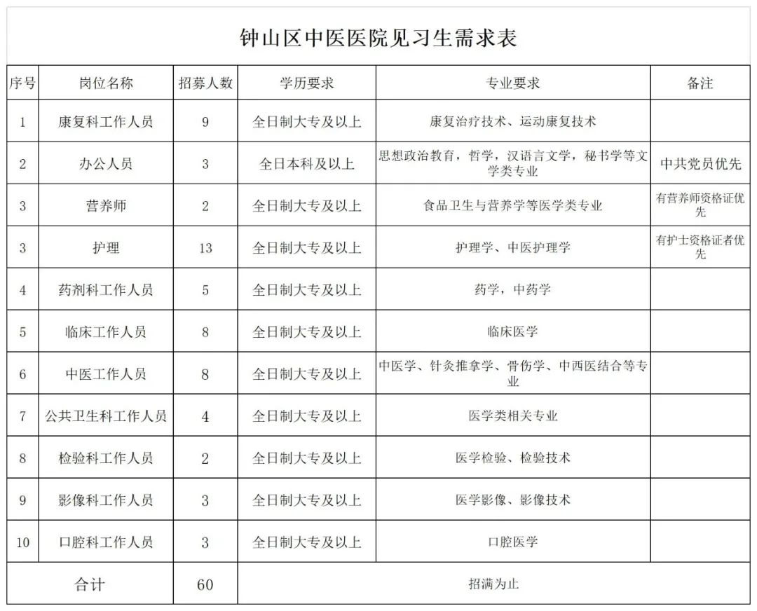 (http://gzggzpw.gzsrs.cn)进行注册登记报名。贵州公共招聘网→青年(高校毕业生)就业→青年就业见习→见习岗位(更多)→单位名称:六盘水市钟山区中医医院→投递岗位。