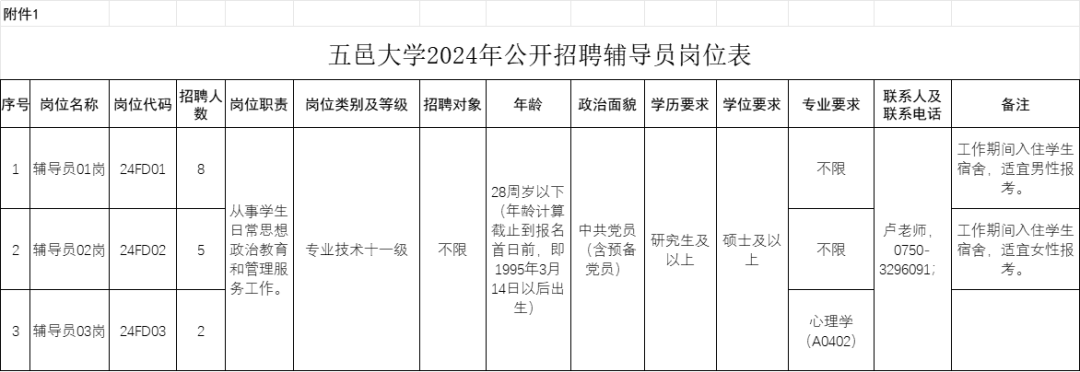 附件1:五邑大学2024年公开招聘辅导员岗位表.xlsx