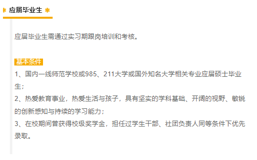 1、国内一线师范学校或985、211大学或国外知名大学相关专业应届硕士毕业生;