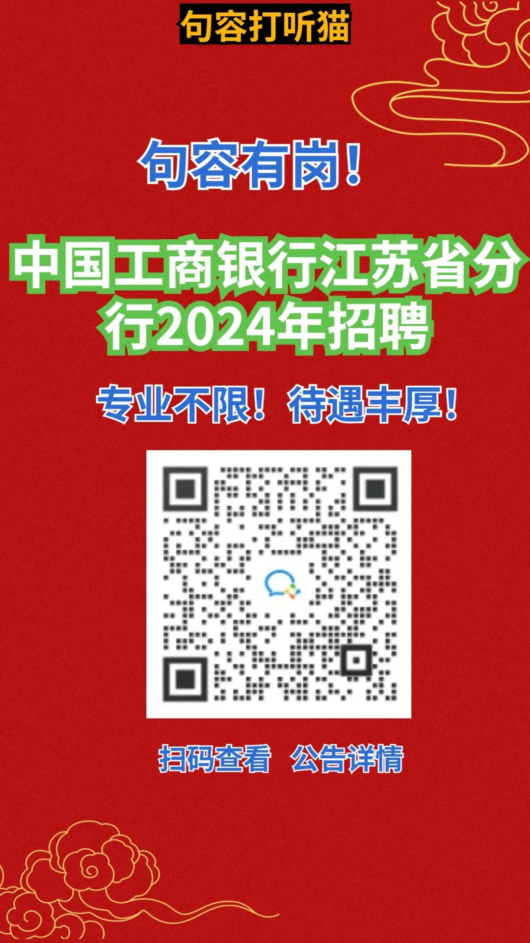>句容可报!中国工商银行江苏省分行公开招聘啦!【句容打听猫】
