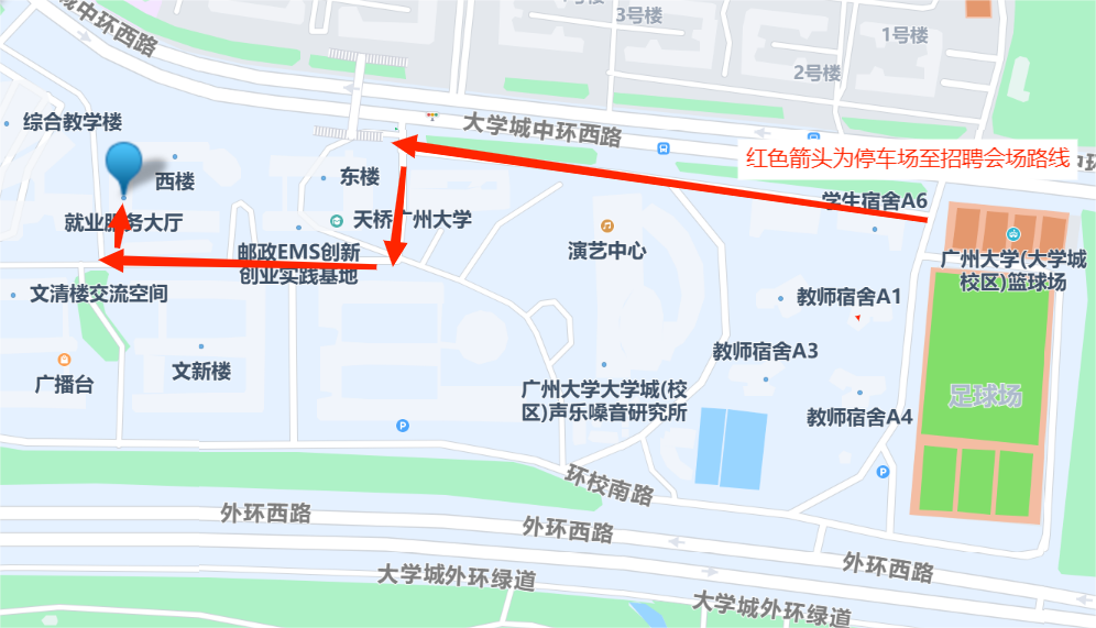 由于停车场离招聘会场地较远,并且校内停车场地有限,我们建议您绿色出行,乘坐公共交通或出租车到广州大学大学城校区广大站、或广州大学西北门。