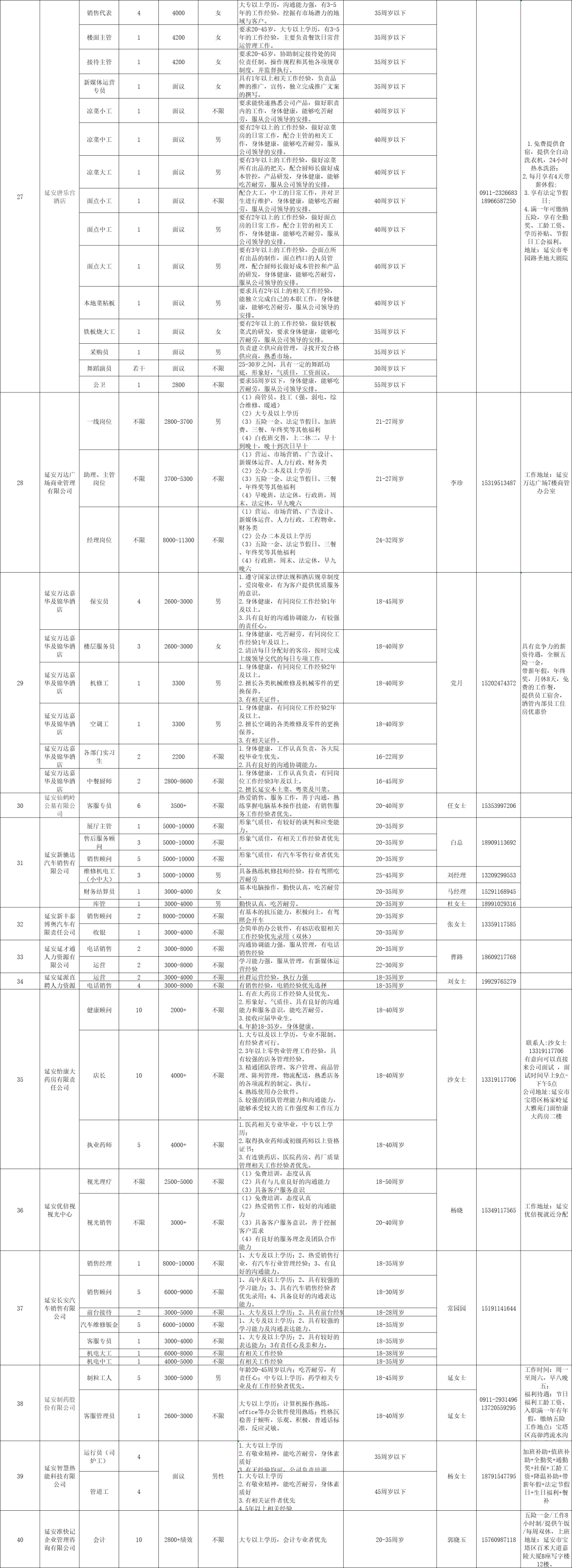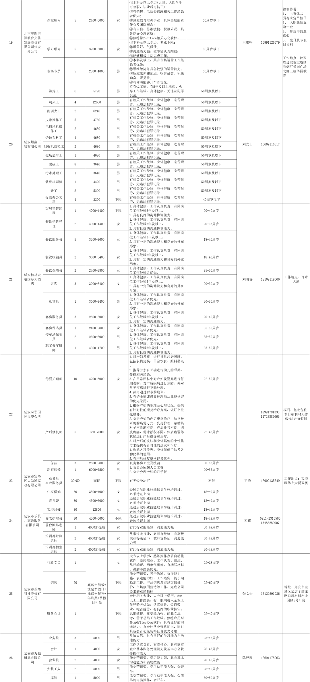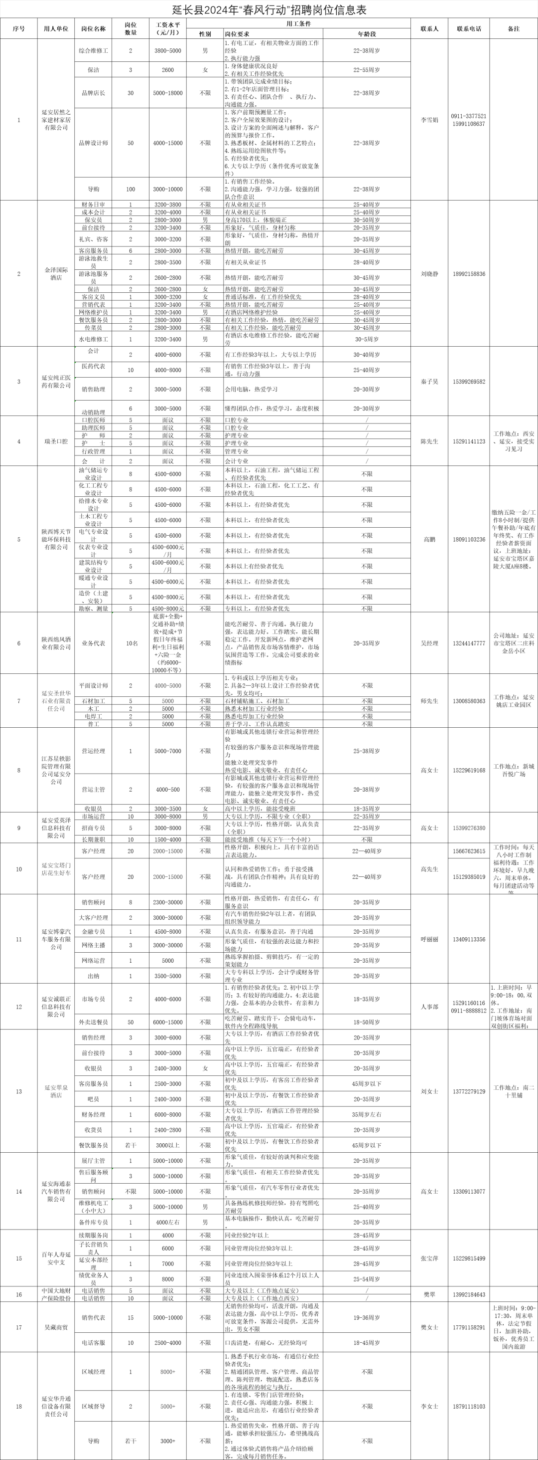 延长县2024年“春风行动”招聘岗位信息