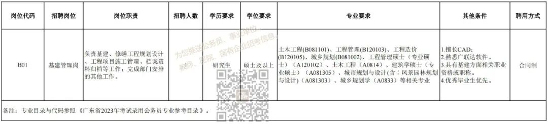 二、招聘基本条件 (一)具有中华人民共和国国籍。 (二)遵守中华人民共和国宪法和法律。 (三)思想政治素质好,团队合作意识较强,具有良好的品行和职业道德。 (四)具备岗位所需的专业及技能条件。 (五)具备适应岗位要求的身心条件。 (六)年龄条件:原则上要求年龄在35周岁及以下。 (七)报考人员须具备报考岗位所需的学历学位条件,以及报考岗位所需其他条件,详见《广东舞蹈戏剧职业学院2024年公开招聘基建管理岗工作人员岗位表》(附件1)。 (八)下列情况之一者,不得报考: 1.受党纪、行政处分未满5年或其他党纪、行政处分正在处分期内的。 2.近三年内,在机关、事业单位招录(聘)考试、体检或考察中存在违纪行为的。 3.因涉嫌违法违纪正在接受审计、纪律审查或者涉嫌犯罪,司法程序尚未终结的;或者刑事处罚期限未满的人员。 4.法律、法规规定的其他不得应聘的情形。 三、报名方式 (一)本次招聘采取网上报名的方式,不设现场报名。请应聘者按要求填写报名表,并提供身份证、学历学位证书、资格技能证书等材料的扫描件发送至指定邮箱。 1.电子邮箱:hrd@gdddc.edu.cn 2.联系人:李老师 3.联系电话:0757-85583611 4.材料提交要求 应聘人员应将所有报名材料按要求全部存放于一个文件夹,以压缩文件格式发送至指定邮箱。文件名称请命名为:岗位代码+岗位名称+姓名(如:B01基建管理岗张三)。 (1)《广东舞蹈戏剧职业学院应聘人员报名登记表》(公众号回复“0312”即可获得)、《广东舞蹈戏剧职业学院应聘人员基本情况汇总表》(公众号回复“0312”即可获得),不改变文件格式。 即可获得报名方式等 (2)毕业证书、学位证书、职称证书、身份证等证件扫描件,单独存为PDF文件并加注相应的文件名(如:张三研究生毕业证.pdf),请不要粘贴在word文档中。 (3)无犯罪记录证明。 (4)其他证明材料,可扫描于同一个PDF文件中。 (二)报名截止时间:即日起至2024年3月31日。 四、考核流程 (一)学校对应聘人员的报名材料进行资格审核和初选,根据岗位匹配程度,择优确定应试人选,合则约见。考试的时间、地点将以电子邮件或手机通讯等方式另行通知,请应聘人员关注并保持通讯畅通。 (二)面试者来校面试时须提交全部报名材料的原件(现场审核后返还)、复印件(含身份证、学历学位证书、职称证及其他证明材料)。 (三)学校综合应聘人员基本情况和面试情况,确定拟聘人选。 (四)拟聘人选按要求到指定的三级甲等医疗机构进行体检。体检项目和标准按相关要求执行。 (五)根据考核、体检、考察结果,确定拟录用人员名单,拟录用人员名单在学校官网予以公示,公示时间为5个工作日。 (六)公示无异议者,持录用通知到学校人力资源部报到,签订劳动合同。逾期不报到者视为自动放弃。 五、薪酬待遇 录用人员以非事业编制形式入校工作,薪酬待遇按学校有关规定执行。 六、有关情况说明 (一)招聘工作在学校招聘工作领导小组的指导下进行,坚持公开报考条件、公开考试程序、公开考试结果,严肃工作纪律,严守工作秘密,严格实行回避制度。 (二)应聘人员须于报名截止日前取得相应的毕业证书、学位证书。港澳学习、国外留学人员须在报名截止日前取得教育部中国留学服务中心境外学历、学位认证函及有关证明材料,并在报名时提交教育部中国留学服务中心境外学历、学位认证书以及有关证明材料。 (三)以不正当手段获取应聘资格,如伪造、涂改证件、证明、个人信息材料等,或在考核、体检、考察过程中弄虚作假的,取消录用资格。 (四)录用人员的人事档案应在指定时间内转入我校。 (五)本招聘公告中所列岗位,若非特别注明,均需跨广州、佛山两地工作。 温馨提醒 因网络诈骗现象较多,花样百出,用人单位以任何名义向求职者收取费用都属违法行为!请提高警惕!谨防上当受骗!前往应聘面试或去某一地工作时,最好跟亲朋友好友告知去向,以便安全应聘面试,祝大家顺利找到好工作! 你点一个 招聘菌的工资就涨三毛