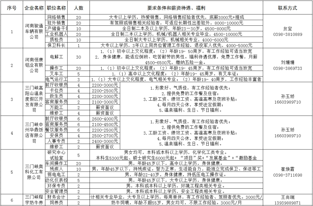 >三门峡市陕州区2024年“春风行动”线上招聘信息汇总