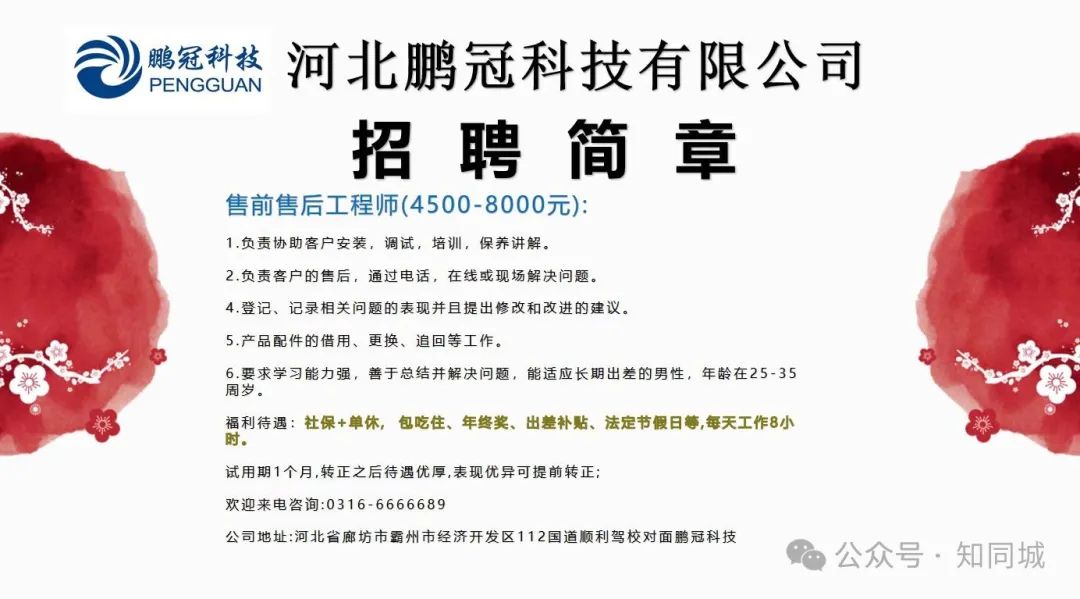 ![]() 限公司招聘] 操作工 2名,技术学徒工2名,包吃包住,工资面议 电话:13012008378 地址:廊坊市北旺村附近 招聘光伏测量人员1名底薪3500+油费报销+提成 招聘光伏业务人员20名 招聘光伏资料申报员1名3500+油费报销+提成 工作地点文安县大留镇 大城地区招聘光伏业务员 电话13313170939 年龄 性别 学历不限,工作自由 没压力 可兼职,要求:口齿伶俐 沟通能力强 有一定人脉关系优先,月收入五到十万左右不是梦 根据个人能力而定,对钱不感兴趣的勿扰 自认为自己是笨蛋的勿扰 爱贪小便宜的勿扰!骗子勿扰!没正事的勿扰!本公司承诺 绝不建立在坑人害人的基础上去挣钱电微同步李18265753787仅限于大城 ![]() 地址:流标测速北东中国人民电气 联系电话15100684403 同时本店有各种挤压机配件,液压配件,液压油封大全,各种液压对丝接头,锁各种液压油管! 招聘: 光伏组件安装工人数名, 业务经理数名, 业务员数名,高提成,工作自由 电话15630670666 ![]() 本厂生产:岩棉复合板 净化板 泡沫复合板 彩钢单板 彩钢单瓦附气泡垫 五峰860型 四峰860 910型 900型 阳光板 860型 900型 1米到1.5米平板 C型钢 80-300型 霸州京华、天津新宇、常熟烨辉彩涂板 批发零售各种规格冷热镀锌方管20方-120方,圆管四分-八寸,黑白角铁,黑白槽钢,黑白工字,H型钢, 以上所有货物常年大量库存稳定供应、欢迎新老客户前来洽谈 地址:大城县县城北5公里南楼堤村加油站东100米 电话微信:18831640111 地址:大城县东迷堤村,有宿舍,附近人员优先 联系电话18233605777 ![]() 招聘吹膜师傅3人,干活有责任心,身体健康。 有吹膜工作经验者优先。 工作时间早上7点下午7点。管吃住,不累,有夜班,工资6000-9000元,常年有活,上工伤保险 详情面谈或电联, 联系电话:叶经理13513169372 地址:大城县臧屯镇十里湾村 ![]() 地址:大城县东迷堤村,有宿舍,附近人员优先 联系电话182233605777 12小时两班倒有夜班。 有全勤奖/年终奖/补助金等 要求40岁以内(女士优先) ②【招办公室文员】工资3000-3500有假期有满勤,要求会用管家婆会制单打单等,年龄35以内女士 ③【招注塑机调机维修师傅】2名 【招注塑机调机工艺学徒】2名 工资面议12小时有夜班 ④【招组装工/零工】白班8小时-工资3500-5000 欢迎致电18532319805 工作地点:赵各庄镇尹村民族路世纪盛华工贸有限公司 ![]() 电话:13831602461(介绍有茶水费) ![]() ![]() 1、招库管:3名,男,25一42岁,身体健康,有库管从业经验优先,中专以上学历,会电脑打字,身体健康,正能量,包食宿。工资6000一6500元/月,月开支。 2、招工人10名,男,25一48岁,9小时,白班,身体健康,工资6300元,包食宿以上两个岗位,月开支 公司地址:廊坊市大城县留各庄镇 联系人:张经理19801239865。非诚勿扰。 地址:大尚屯后街永腾仪表公司 招工热线18231686225, 15132606875。 1、叉车司机1名,工资7500元 2、素板库、成品库管、纸库各1名,工资4500-6000元。 3、打包工1名,男士优先,工资5000--6000元。 公司手续齐全,常年有活,管吃管住。宿舍有空调,地暖,上保险。 电话:19933666280 自动送料,冲孔机,切管机,有需要的老板联系 省时,省力,省工费…… 微信同步:15931461342 ![]() 科泰塑料制品厂 招零工两名月工资6000-7000元(会开叉车优先)。 招炒料工两名月工资7000-8000元。 厂内有食堂,宿舍洗澡间空调暖气齐全。本厂各项手续齐全常年有活不放假。 地址:文安县徐黄甫村 电话:15690149888 坐落在文安县迎宾道迎宾花园小区北创门脸,四层,建筑面积共计 400平米的门脸楼出租价格面议电话18033650022/18036650011 ![]() ‼️招聘 注塑工人数名(工作时间两班倒.) 年龄20-45(工资6000+) 销售员数名20-40岁(工资3000保底+提成) 包住宿 工资面议 联系电话:18033650022 15076617513 东晨塑料制品厂 地址:河北省廊坊市文安县赵各庄镇小堡村东晨塑料制品厂 2、自媒体运营员1名,要求:(1)熟悉主流平台规则、玩法,有运营经验。(2)能够完成短视频账号搭建,策划账号定位、输出内容,推进账号各项工作。(3)了解公司所处行业,了解产品和用户,保证视频内容实时符合公司发展。(4)擅长视频剪辑拍摄,底薪+奖金。 3、销售合伙人数名。 地址:大城县大尚屯镇付庄村,具体可面议19333686732 出租住宿房屋,单间,双人间,夫妻间,3一4人间均有,备有空调,洗澡间,卫生间水电齐全 地址:城西季村,检测线对过,津保路南,有意者联系 电话13082050617.13932670232 ![]() ![]() 工作地址:大城县旺村镇 特开展会员活动 地址:留各庄农业银行南行100米路西 电话:19322641333 ![]() 出纳一名, 销售数名,要求女性,底薪加提成 有意者面议。 地址:广安镇东流河村南; 电话:18333604330 招聘简章 售前售后工程师(4500-8000元): 1.负责协助客户安装,调试,培训,保养讲解。 2.负责客户的售后,通过电话,在线或现场解决问题。 4.登记、记录相关问题的表现并且提出修改和改进的建议。 5.产品配件的借用、更换、追回等工作。 6.要求学习能力强,善于总结并解决问题,能适应长期出差的男性,年龄在25-35周岁。 福利待遇:社保+单休,包吃住、年终奖、出差补贴、法定节假日等,每天工作8小时 试用期1个月,转正之后待遇优厚,表现优异可提前转正; 欢迎来电咨询:0316-6666689 公司地址:河北省廊坊市霸州市经济开发区112国道顺利驾校对面鹏冠科技 ![]() 阿里巴巴开户 店铺托管代运营 图文视觉设计 代办营业执照 电话:17731695950 老板助理一名要求有C本4000起 薪资待遇面议 ,管吃管住 工