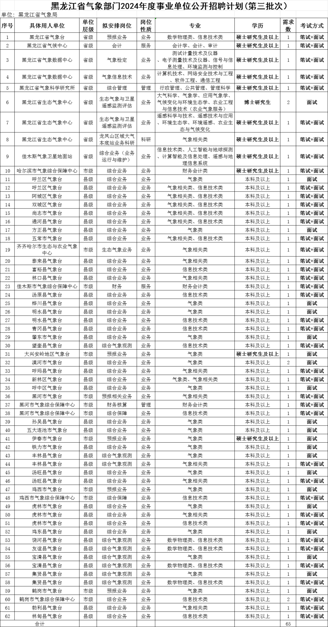黑龙江省气象部门2024年度高校毕业生招聘公告 (第三批次)