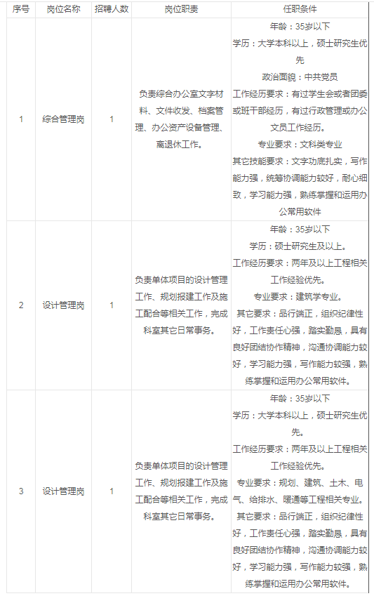 二、招聘岗位及任职条件