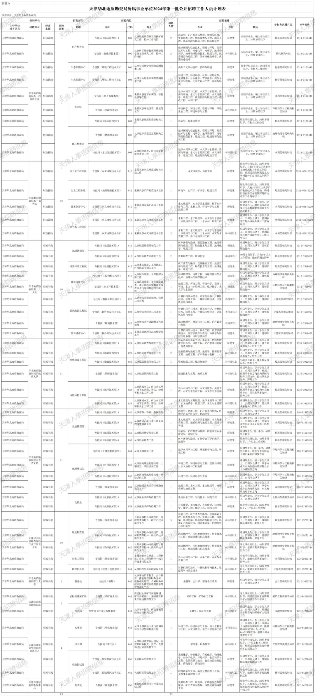 招聘单位、岗位名称、招聘条件、联系方式等信息详见《天津华北地质勘查局所属事业单位2024年第一批公开招聘计划表》(附件1)