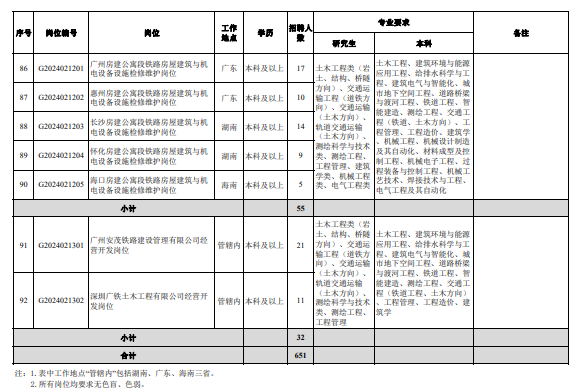 中国铁路广州局集团有限公司2024年招聘普通高校毕业生公告(二)