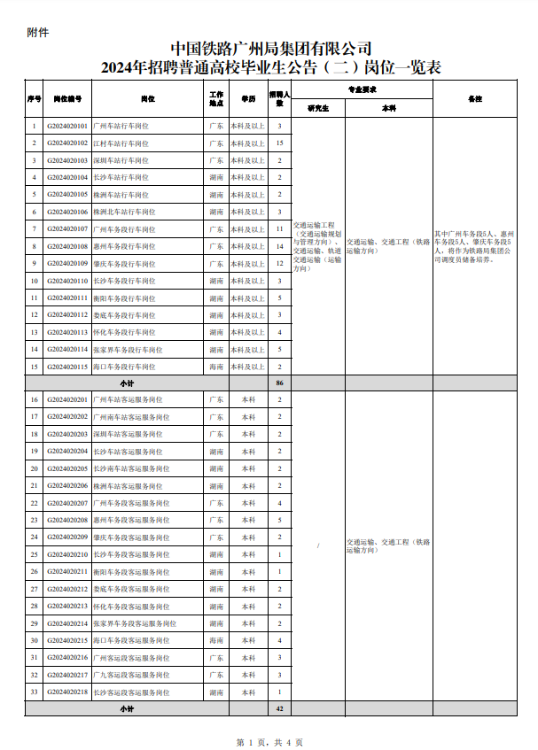 附件:中国铁路广州局集团有限公司2024年招聘普通高校毕业生公告(二)岗位一览表.pdf