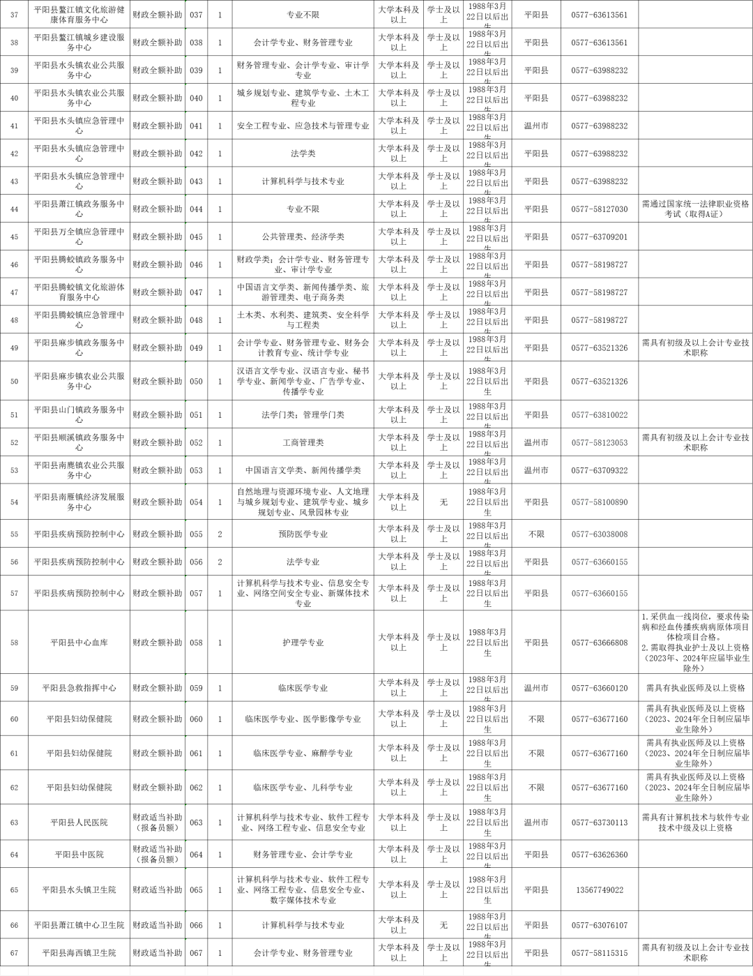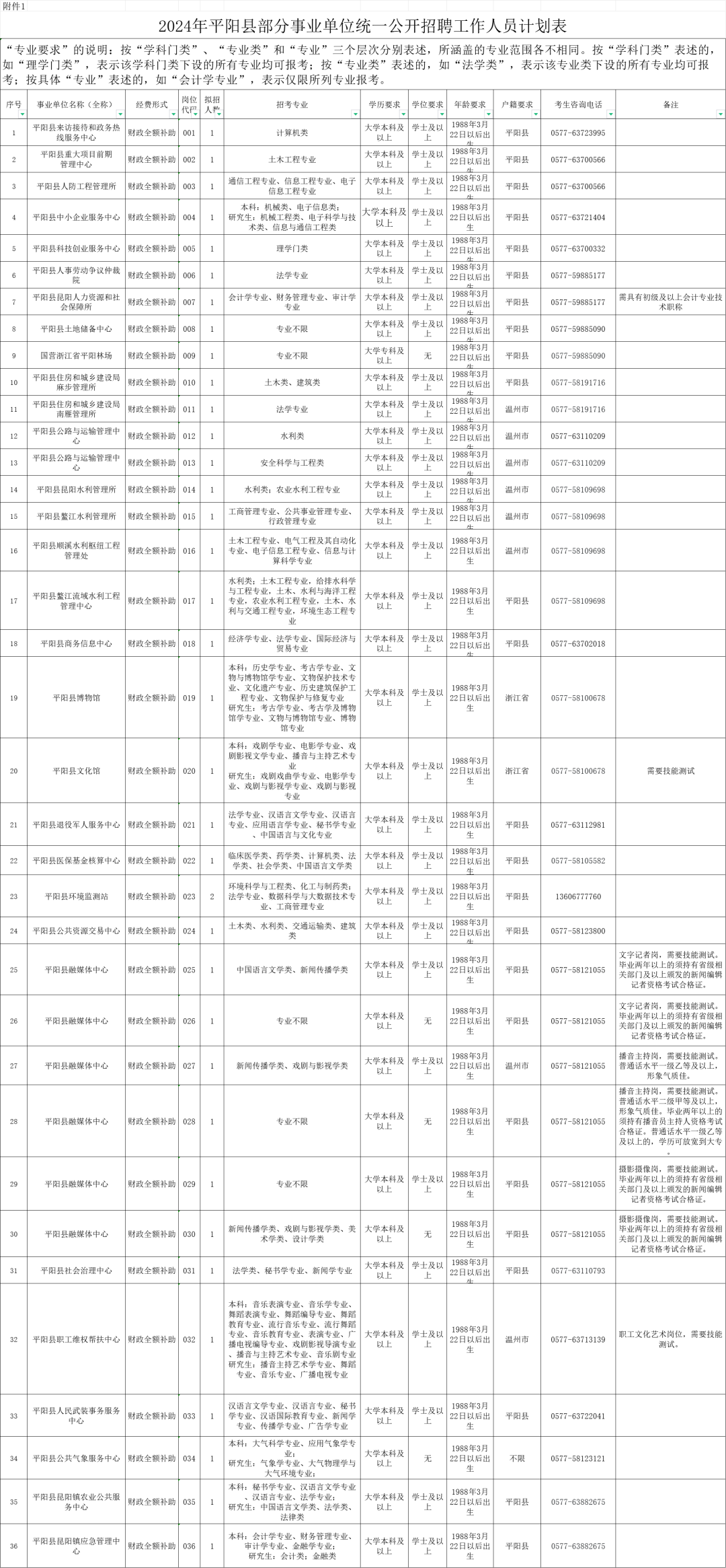 (一)用人单位和具体岗位及要求详见《2024年平阳县部分事业单位统一公开招聘工作人员计划表》。