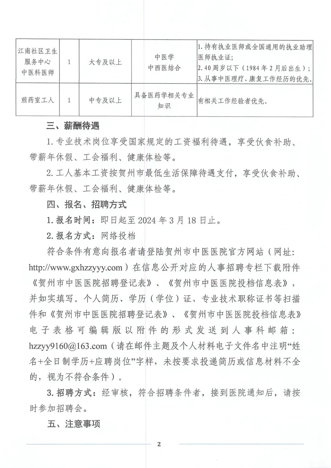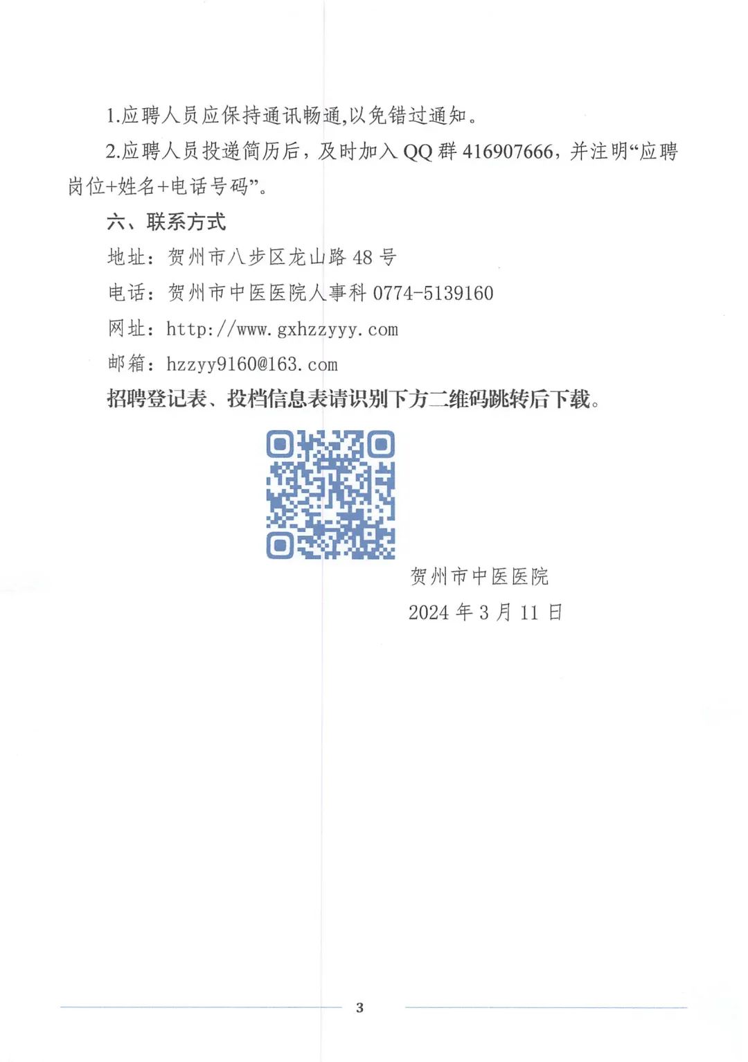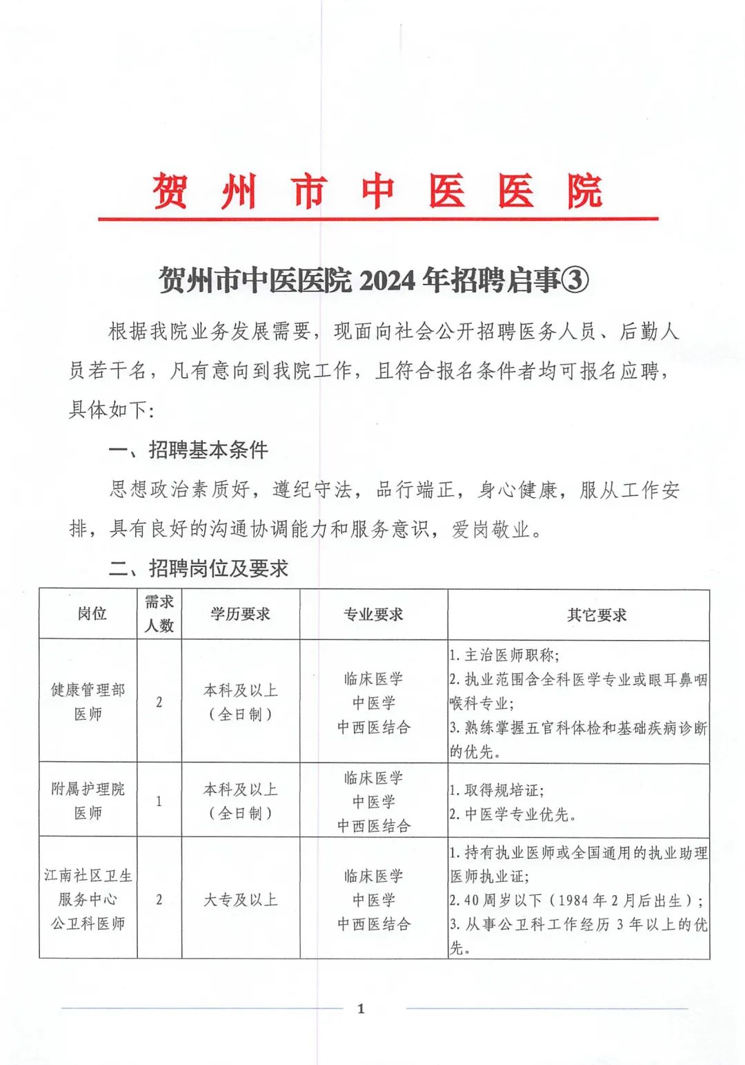 广西医护招聘,贺州市中医医院2024年招聘启事③