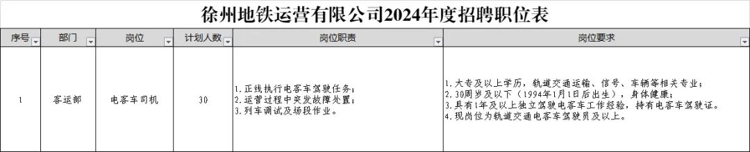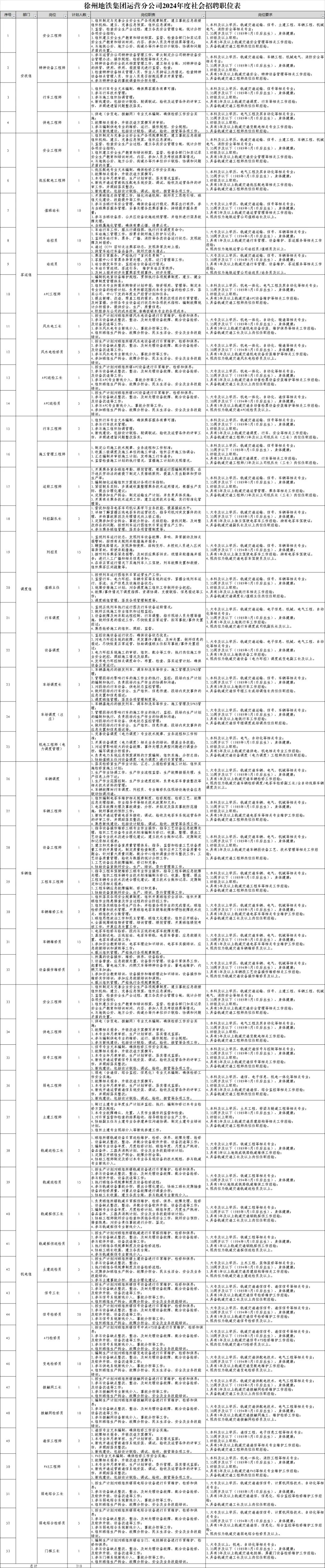 1. 徐州地铁集团运营分公司2024年度社会招聘公告