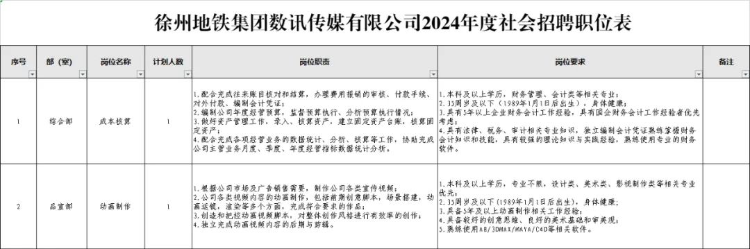 3. 徐州地铁集团数讯传媒有限公司2024年度社会招聘公告