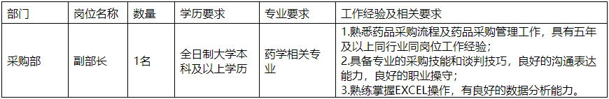 公司坐落于贵州双龙航空港经济区空港医药物流园内,物流中心建筑面积60000平方米,投资3.5亿元,是西南地区目前单体规模较大、技术较先进的现代化医药物流中心,在国内同行业中位居第一阵营。医药物流中心的建成并投入使用,使我省医药流通行业真正实现了由传统仓储模式向智慧物流转变的历史性跨越。根据公司发展需要,本次面向社会公开招聘相关岗位工作人员共计1名,有关招聘事项公告如下。
