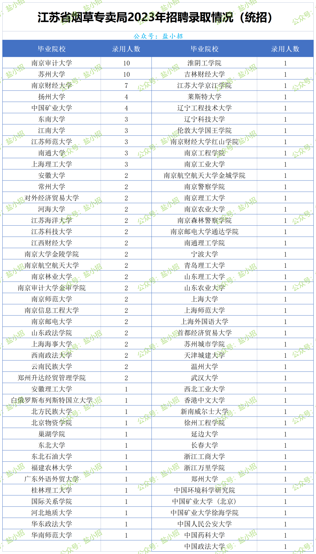 第一批次优选校招高校毕业生27人,详见《江苏省烟草专卖局(公司)系统2024年员工招聘计划与岗位需求(第一批次)》(附件1)。