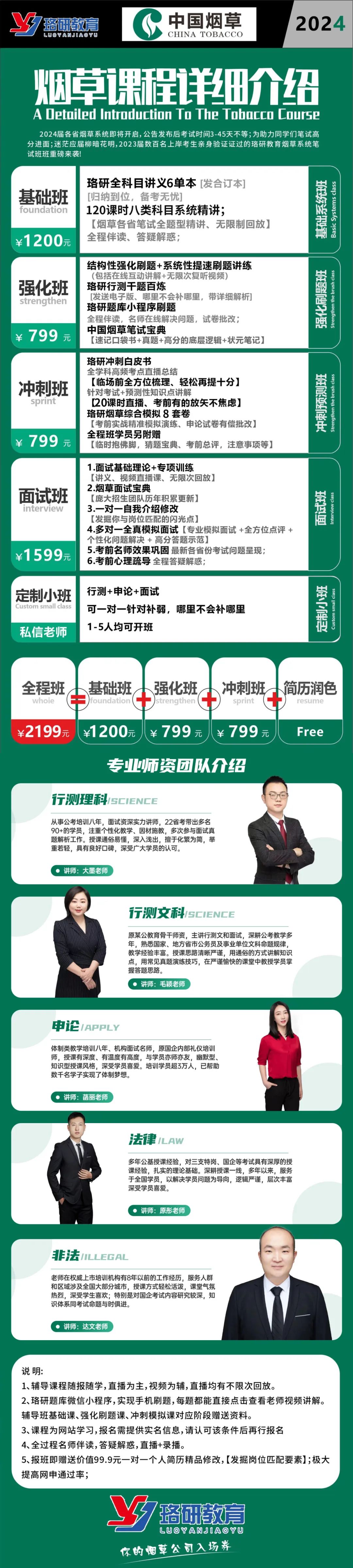 (二)本次招聘不举办也不委托任何机构、个人举办任何形式的考前培训班,任何针对本次招聘笔试和面试的辅导班、考试教材、复习资料,均与江苏省烟草专卖局(公司)无关。
