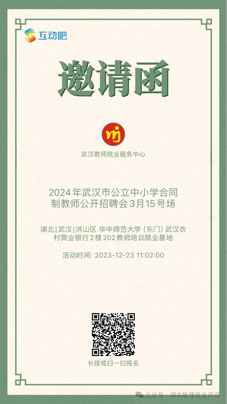 >>>武汉市公立中小学校招合同教师2024年3月15日场: