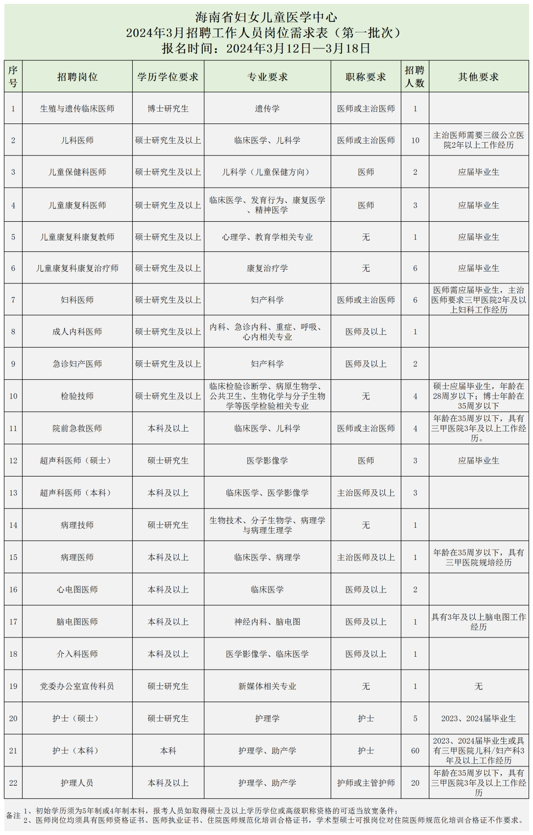 招聘信息发布在海南省妇女儿童医学中心官方网站。