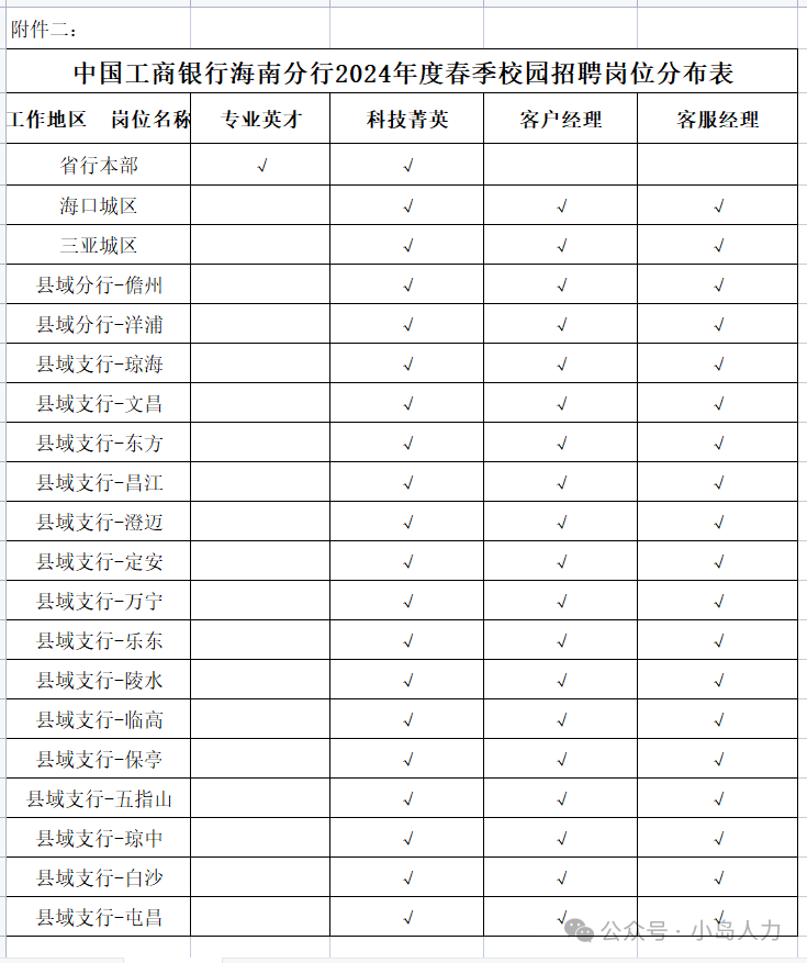 附件二:中国工商银行海南分行2024年度春季校园招聘岗位分布表.et