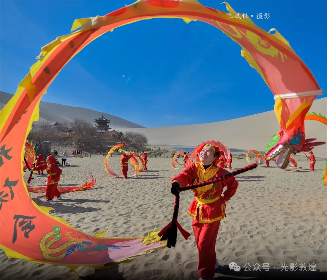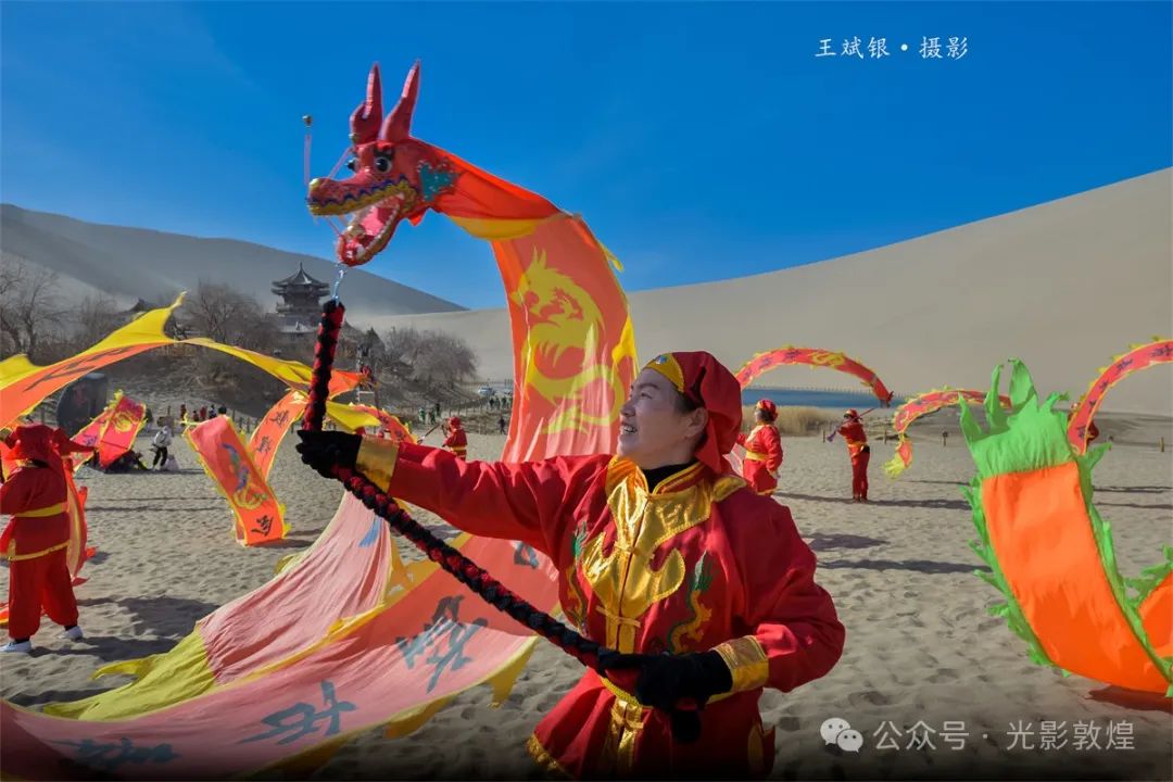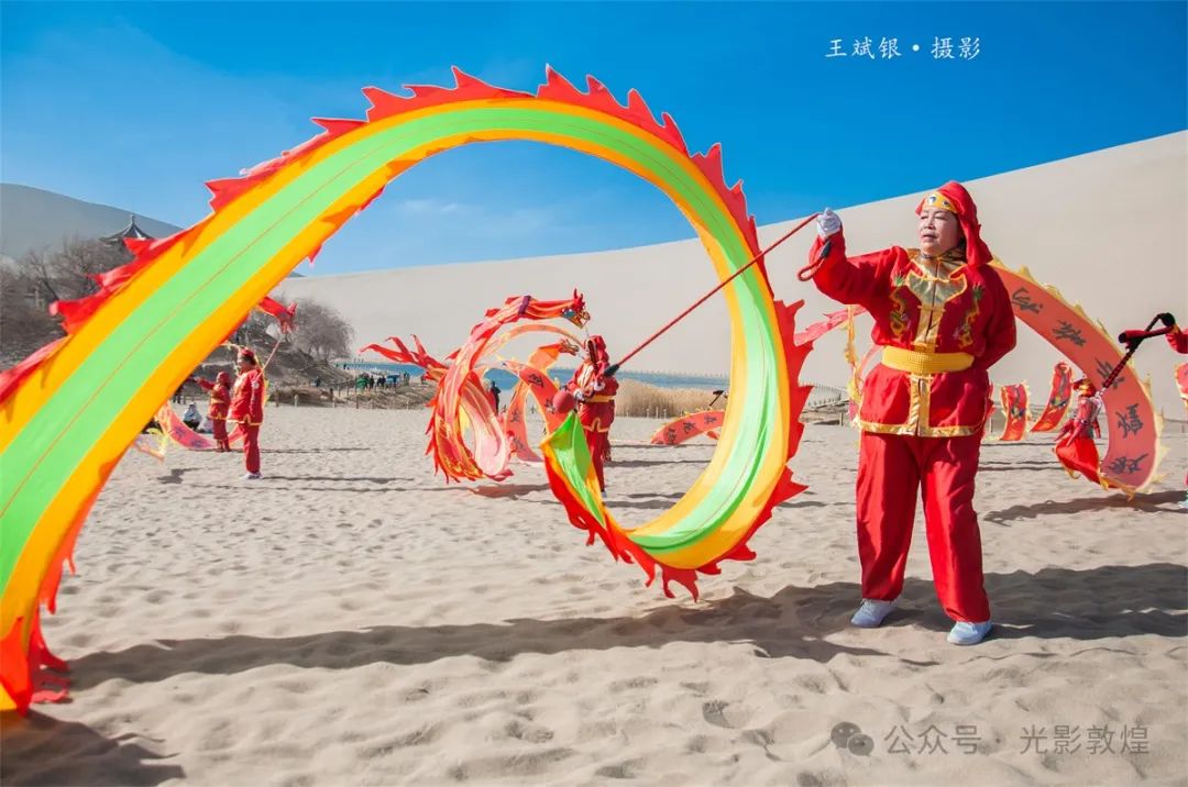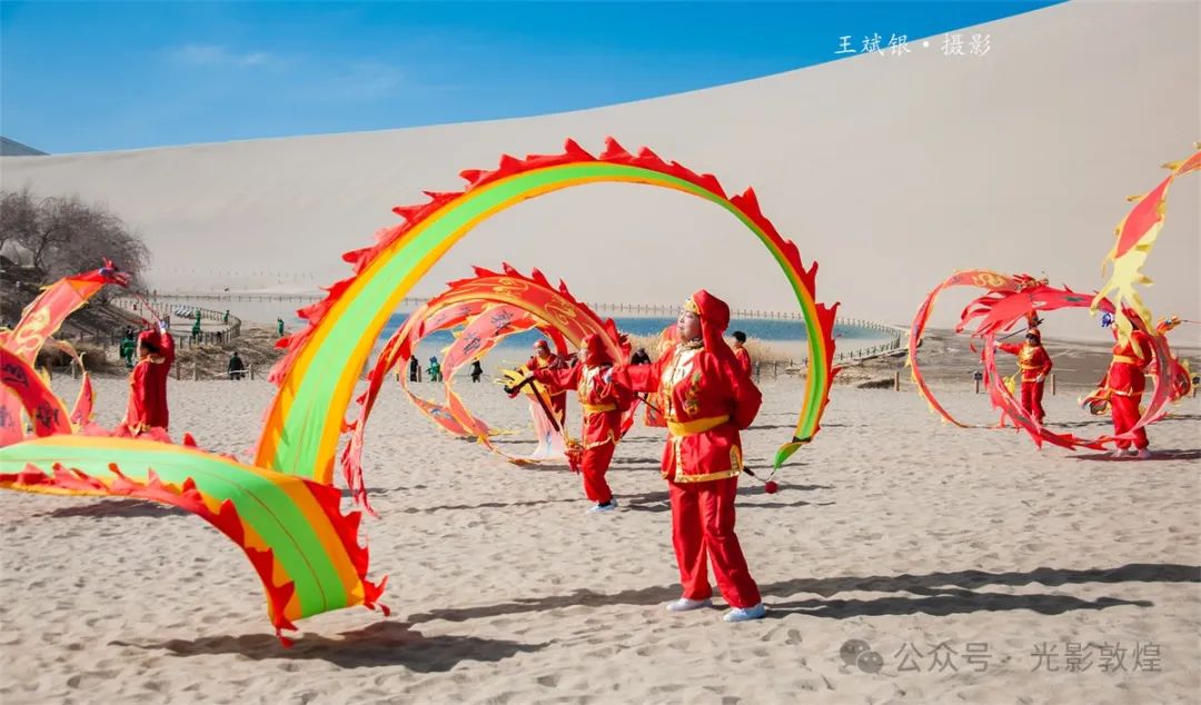3月11日,正值农历二月初二,甘肃省敦煌市在鸣沙山月牙泉景区举行了“春龙抬头· 行游千年”的非遗民俗文化表演活动。