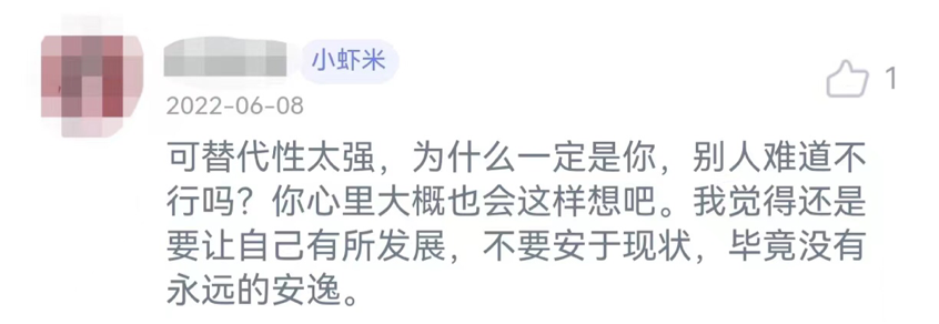 这样的生活过久了,虽然常常抱怨无聊、没提升,但也没什么改变的动力。