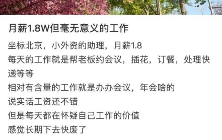 “月薪1.8万,每天工作就是帮老板处理杂事和快递,感觉自己快要废了。”