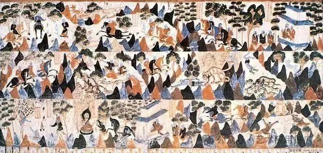 在敦煌壁画中,花树的形象非常多。其实,它们都源于现实中存在的物象。这些源于佛教诞生地的树木一开始就带有神秘的色彩。在佛教沿陆上“丝绸之路”东传的过程中,作为中转站的敦煌对来自印度的花树进行了一定的复制和转绎。图为莫高窟中的壁画故事