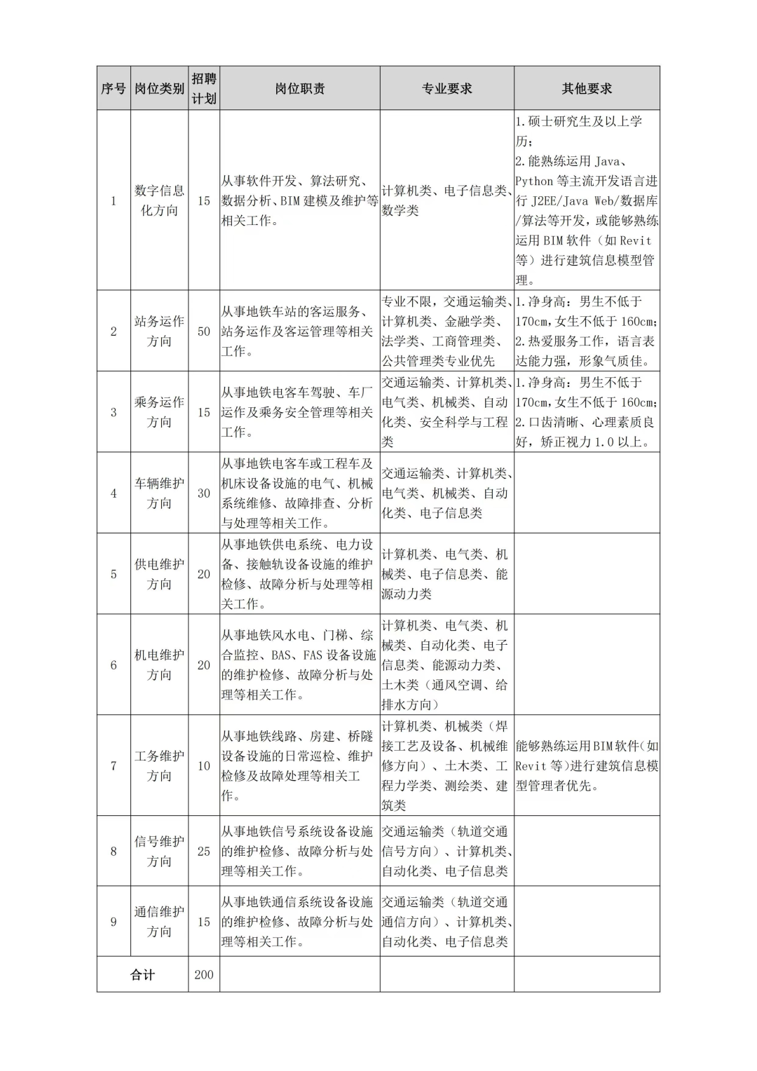 车辆/供电/机电/工务/信号/通信维护类专业和计算机类专业双学位者优先