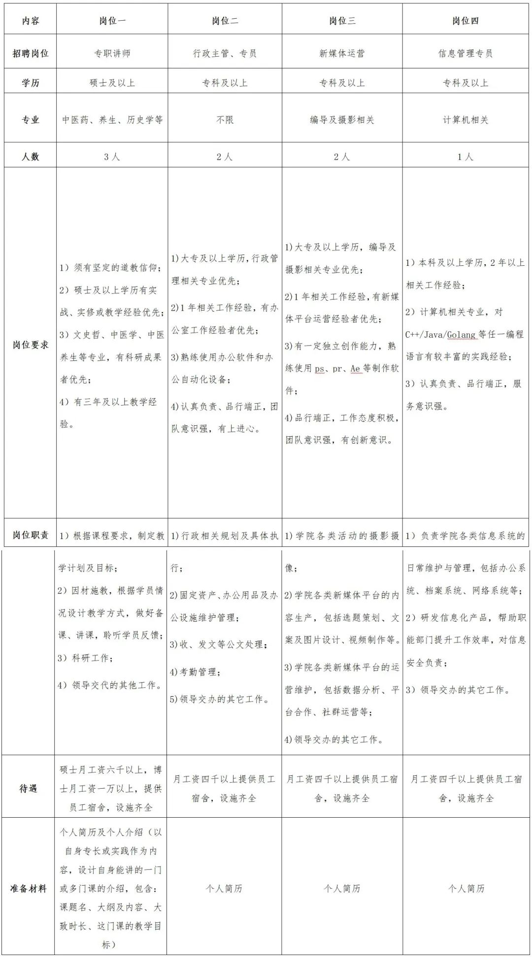 龙虎山道教学院招聘启事