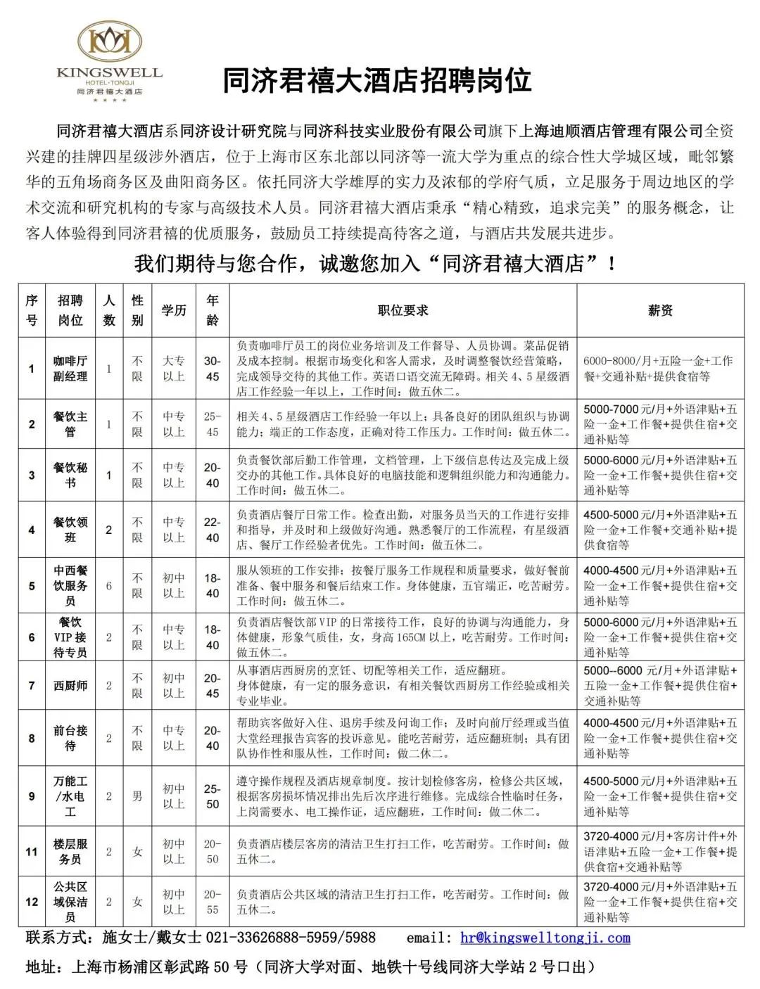 我们期待与您合作,诚邀您加入“同济君禧大酒店”!