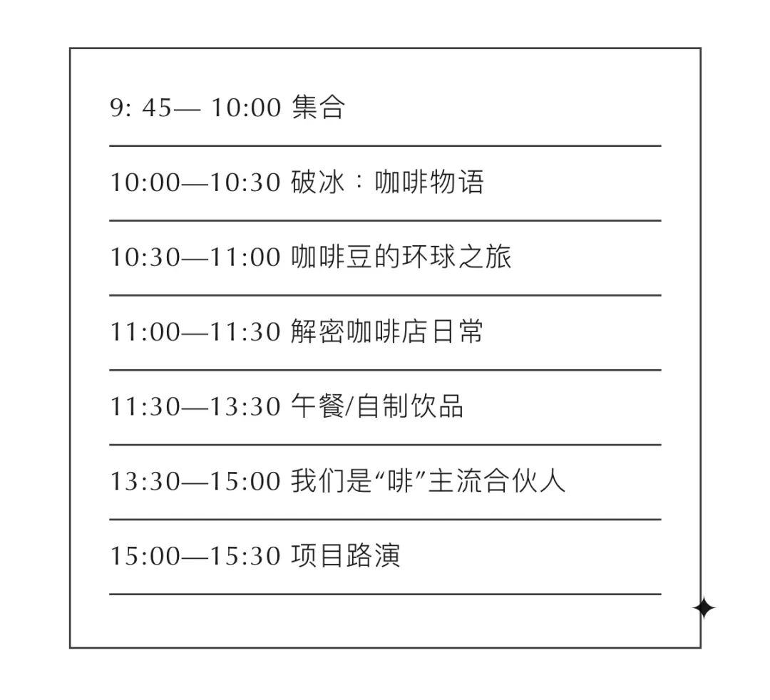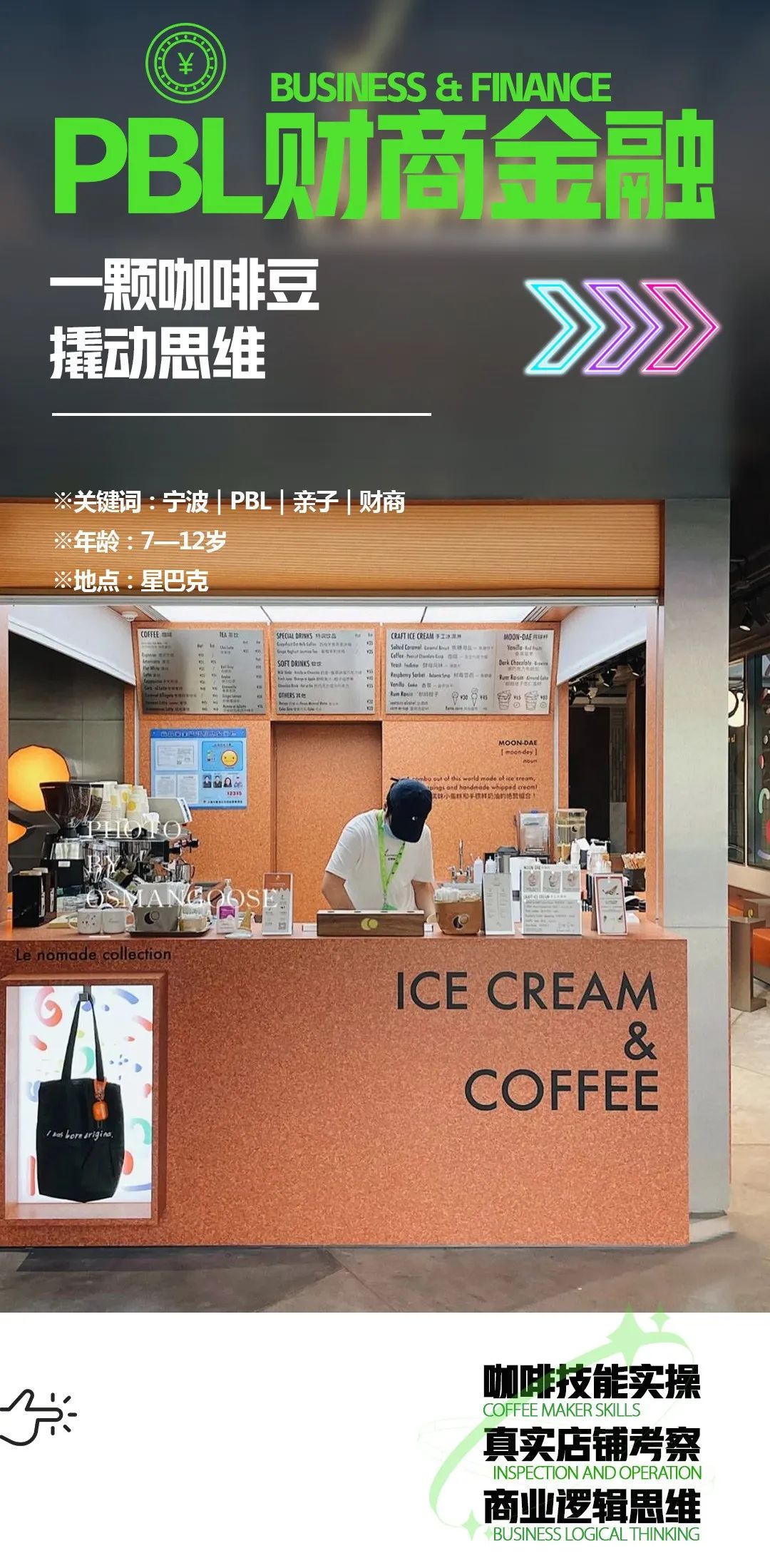 咖啡,世界三大饮料之一。“咖啡”一词源于希腊语“Kaweh”,意思是“力量与热情”,在世界各地人们越来越爱喝咖啡。 学习咖啡文化,体验咖啡制作,探索一颗咖啡豆的奇妙旅程。 我们选择真实的咖啡店作为课程的地点,将孩子放在最真实的环境中,在一阵阵咖啡香气萦绕下,在一杯杯咖啡制作和售卖体验中,在一次次和团队小伙伴进行思维碰撞中,拥有最真实的体验。