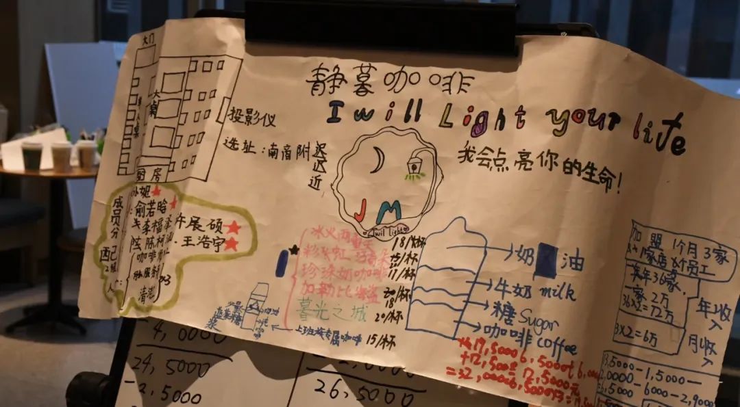 孩子们在相互介绍认识后便发挥自己的特长认领职务,如何向银行申请创业基金?如何为咖啡店选址,部员,制定特制菜单?如何为其定价、核算成本&利润……都是开一家咖啡店的必经之旅。 除此之外,你还需要做些什么才能售出第一杯咖啡,让咖啡店成功的运营起来呢? 成果和反思 成果展示和全方位评估给予项目反思和总结,让下一次更好!项目的意义不仅是成果展示,更重要的是过程中孩子们的各方面能力是否得到了提升。  在运营一家咖啡店时,考虑的因素有许多,小朋友们需要组织好创立一家咖啡店的先后顺序并通过团队协作,从为店铺取名到真正售出一杯咖啡,了解了咖啡店并不是天然存在的,而是需要结合经济学原理,从一颗咖啡豆开始,一步一步成为一家咖啡店。在成果展示环节,向家长投资合伙人自信的表达自己,以及自己的咖啡店铺创立的全过程。