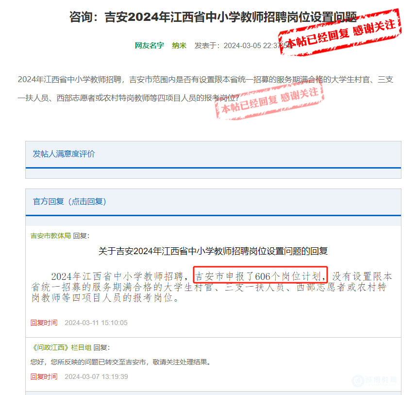 ![]() ![]() ![]() ![]() ![]() 24年江西教师招聘 吉安共申报606个岗位 重磅官宣! 2024年江西教师招聘 吉安市共申报606个岗位计划 ![]() 另新增上岸机会 广东省14地招聘1229名教师 事业编制,部分仅面试 一起来看看有没有合适的岗位~ 关注诚博教育教招公告第一时间推送 ![]() 问 2024年江西省中小学教师招聘,吉安市范围内是否有设置限本省统一招募的服务期满合格的大学生村官、三支一扶人员、西部志愿者或农村特岗教师等四项目人员的报考岗位? 答 2024年江西省中小学教师招聘,吉安市申报了606个岗位计划,没有设置限本省统一招募的服务期满合格的大学生村官、三支一扶人员、西部志愿者或农村特岗教师等四项目人员的报考岗位。 招聘人数:226人 报名时间:3月11日-3月20日 学历要求:本科学历及学士学位 报名方式:网上报名或现场报名 报名网址: https://www.qgsydw.com/xxywzlzt/bmzt/305 考试形式:笔试+面试(综合素质评价+试讲) ![]() 扫码后台发送“广东”查看原文 招聘人数:28人 报名时间:3月11日-3月16日 学历要求:本科学历及学士学位 报名方式:网上报名和现场报名相结合 报名网址:坪山区教育局招聘报名系统 考试形式:模拟上课 ![]() 扫码后台发送“广东”查看原文 招聘人数:20人 报名时间:3月13日-3月19日 学历要求:本科学历及学士学位 报名方式:网上报名 报名网址:深圳市南山区公办中小学2024年3月招聘教师报名系统 考试形式:笔试+面试 ![]() 扫码后台发送“广东”查看原文 招聘人数:190人 报名时间:3月9日-3月16日 学历要求:本科学历及学士学位 报名方式:网上报名 报名网址:通过微信公众号“宝安教育教师招聘”报名 考试形式:笔试+面试 ![]() 扫码后台发送“广东”查看原文 招聘人数:21人 报名时间:3月13日-3月20日 学历要求:本科及以上学历,不限学位 报名方式:网上报名 报名网址:https://www.sydwzk.cn/gdsgxfeduzp2024 考试形式:笔试+面试 ![]() 扫码后台发送“广东”查看原文 招聘人数:34人 报名时间:3月14日-3月20日 学历要求:本科及以上学历、学士及以上学位 报名方式:网上报名 报名网址:https://www.sydwzk.cn/gdzcssyzxzp2024 考试形式:笔试+面试 ![]() 扫码后台发送“广东”查看原文 招聘人数:171人 报名时间:3月12日-3月19日 学历要求:本科及以上学历、学士及以上学位 报名方式:网上报名 报名网址:http:// baokao.gzxiaopao.com 考试形式:笔试+面试 ![]() 扫码后台发送“广东”查看原文 招聘人数:127人 报名时间:3月14日-3月22日 学历要求:本科及以上学历,学士及以上学位 报名方式:网上报名 报名网址:https://talents.baiyunholding.com 考试形式:笔试+面试 ![]() 扫码后台发送“广东”查看原文 招聘人数:76人 报名时间:3月14日-3月20日 学历要求:本科/学士及以上 报名方式:网上报名 报名网址:https://www.sydwzk.cn/gdhdeduzp2024 考试形式:笔试+面试 ![]() 扫码后台发送“广东”查看原文 招聘人数:36人 报名时间:3月11日-3月15日 学历要求:研究生学历 报名方式:网上报名和现场报名 报名邮箱: 兴宁市邮箱:xnsjszp@126.com 大埔县邮箱:dbjyjrsg@126.com 丰顺县邮箱:fsjyrsg@163.com 五华县邮箱:whedursg@163.com 考试形式:说课 ![]() 扫码后台发送“广东”查看原文 招聘人数:107人 报名时间: 广西师范大学:3月13日9:00-12:00 贵州师范大学:3月15日9:00-12:00 江西师范大学:3月19日9:00-12:00 华南师范大学:3月22日9:00-12:00 学历要求:24年应届本科及以上优秀毕业生 报名方式:现场报名 考试形式:试教 ![]() 扫码后台发送“广东”查看原文 招聘人数:80人 报名时间:3月13日-3月19日 学历要求:本科及以上,部分大专可报 报名方式:网上报名 报名网址: ![]() 考试形式:笔试+面试 ![]() 扫码后台发送“广东”查看原文 广东省肇庆市怀集县 招聘人数:144人 报名时间: 肇庆学院:3月11日- 3月15日 岭南师范学院:3月21日- 3月27日 学历要求:本科及以上学历,学士及以上学位 报名方式:网上报名或现场报名 报名网址:https://sydwbk.zqzhrs.cn:8081/account/login 考试形式:笔试加面试方式,音乐、体育、美术等岗位需增加专业技能测试 ![]() 扫码后台发送“广东”查看原文 招聘人数:144人 报名时间:3月13日-3月31日 学历要求:本科及以上学历 报名方式:网上报名 报名网址:https://www.qgsydw.com 考试形式:笔试+面试 ![]() 扫码后台发送“广东”查看原文 2024年江西教招 公告即将发布 诚博也精心准备了冲刺课程 助老师们上岸 ![]() 来诚博 优惠多多 干货多多 快来加入我们吧 有任何问题欢迎在后台咨询 ![]() 教资&教招火热开班中 ![]() ![]() ![]() ![]() 开班现场 火热爆棚 学员信任 学的安心 ![]() ![]() ![]() ![]() 学习氛围浓烈 反馈好评连连 ![]() ![]() ![]() ![]() ![]() ![]() ![]() ![]() 小班定制 精细化教学 全程服务 指导至考前 ![]() ![]() ![]() ![]() ![]() ![]() 诚·博·教·育·一·路·同·行 ![]() |