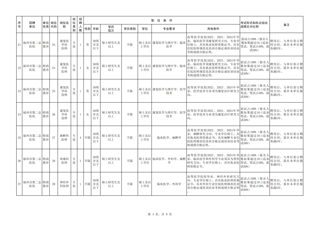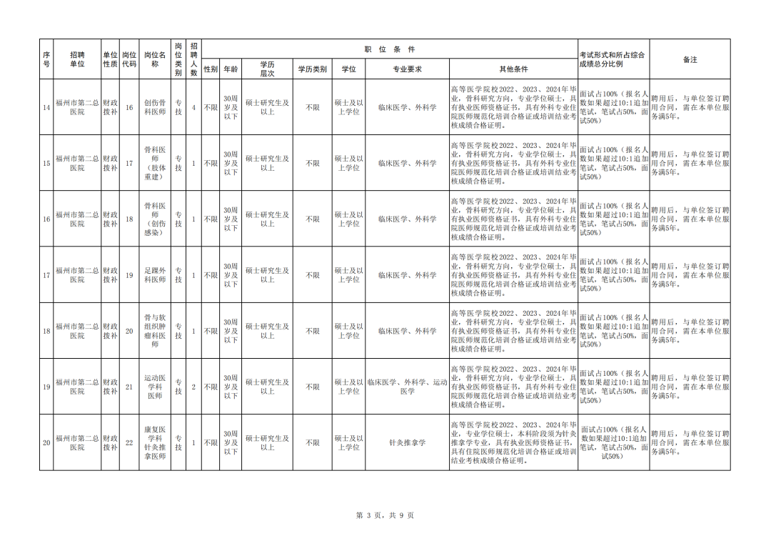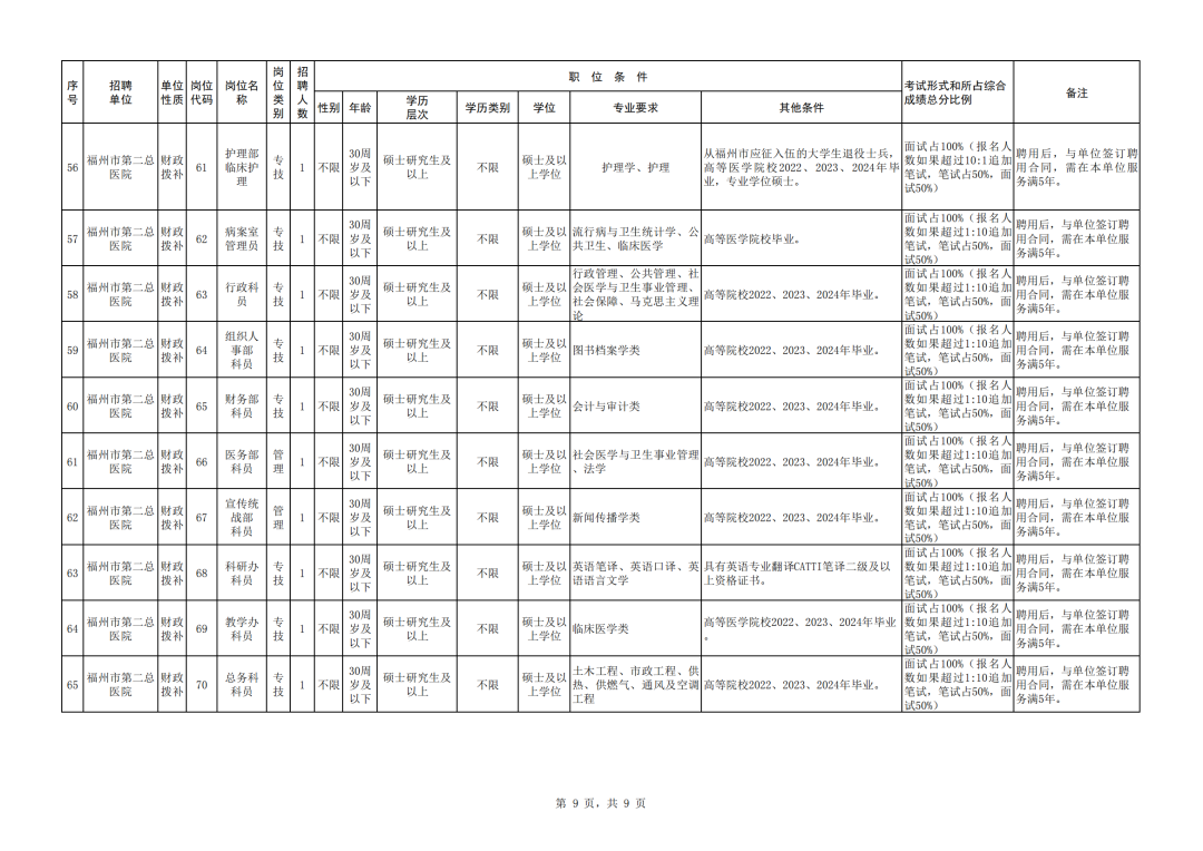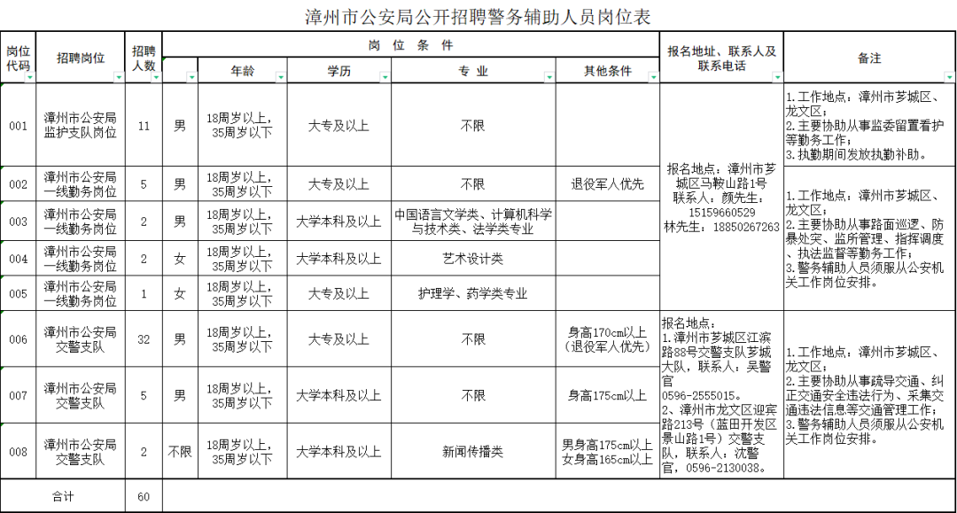 南平市计划招聘事业单位工作人员896名 长按识别二维码 即可获取招聘岗位 报名时间 2024年3月11日8:00至3月15日17:00 报名方式 本次考试采取网上报名的方式进行,不收取报名费。符合条件的报考者于报名截止时间前,通过登陆福建就业网首页“事业单位公开招聘”模块——福建省事业单位公开招聘服务平台,按平台要求进行网上报名。 扫码查看详情 莆田市公开考试聘用部分事业单位工作人员415名 招聘岗位 (上下滑动查看) 报名时间 2024年3月21日8:00至3月25日17:00 报名方式 本次考试采取网上报名的方式进行,符合条件的报考人员于报名截止日期前登录福建省事业单位公开招聘服务平台,按系统要求进行网上报名。 扫码查看详情 福州市第二总医院自主招聘工作人员81名 招聘岗位 (上下滑动查看) 报名时间 2024年3月15日9:00至3月25日17:00 报名方式 登录福建省事业单位公开招聘服务平台,按系统要求进行网上填报 扫码查看详情 福州市中医院自主招聘工作人员21名 招聘岗位 (上下滑动查看) 报名时间 2024年3月18日8:30至3月22日17:30 报名方式 登录福建省事业单位公开招聘服务平台,按系统要求进行网上填报。 扫码查看详情 龙岩市第二医公开招聘研究生及紧缺急需专业技术人员64人 招聘岗位 (上下滑动查看) 报名时间 2024年3月4日9:00至4月8日17:00 报名方式 采取网络报名登陆龙岩卫生人才网“账号注册”“个人信息完善”“选择相应岗位”进行报名。 扫码查看详情 漳州面向社会公开招聘警务辅助人员60名 招聘岗位 (点击放大查看) 报名时间 2024年3月8日至3月22日的正常工作时间 报名方式 采取现场报名的方式进行,应聘者根据自身情况及岗位条件,到指定报名地点(见岗位表)报名 扫码查看详情 即可进入“遇见闽侯”微信公众号 点分享 点点赞 点在看 |