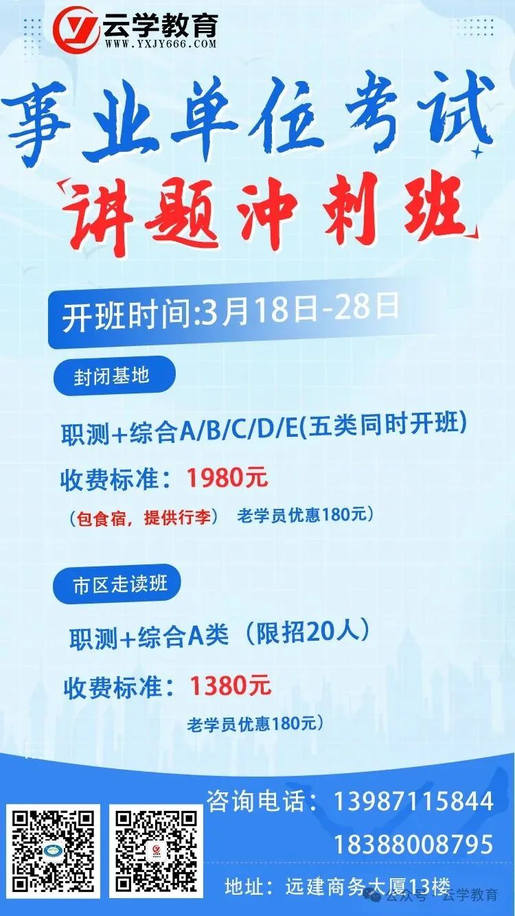点击上方蓝字关注我们 关注“云学教育”——获取更多培训辅导、备考资料、招聘资讯 联系电话:0871-65190163 客服老师:18388008795 王老师:13987115844 夏老师:18187300500 肖老师:15808851225 QQ咨询:760121168 中国工商银行股份有限公司云南省分行是中国工商银行股份有限公司所属的一级分行,下辖16家二级(州市)分行,营业网点330余个,员工近8000人。自成立以来,我行始终秉持“工于至诚,行以致远”的价值观,积极践行以客户为中心,在投融资一体化、智慧银行、资产托管等领域不断推陈出新,有效满足客户多元化的金融服务需求,凭借卓越的金融服务能力,深耕彩云之南。同时,始终坚持“人才兴业”,为广大有志青年提供了在金融行业展翅翱翔的舞台。 中国工商银行云南分行2024年度春季校园招聘已全面开启,现热忱邀请优秀毕业生加盟,在这个广阔的舞台上施展才华,共同撰写云南分行的新篇章! 一、招聘机构 中国工商银行云南分行 二、招聘范围 面向境内、境外高校毕业生,毕业时间为2023年1月至2024年7月。 三、招聘岗位(400人) (一)星辰管培生。主要为各级机构管理类岗位提供基础人才储备,该类岗位录用人员将优先纳入星辰管培生培养计划。 (二)专业英才。主要为我行新兴业务、重点业务、综合业务提供专业人才储备。新员工录用后原则上先安排至基层营业网点进行一定期限的培养锻炼,之后根据个人工作表现及工作需要等,聘入相应岗位工作。 (三)科技菁英。主要为境内分行和科技类直属机构甄选产品研发、用户研究、大数据研究等领域的科技专业人才。 (四)客户经理。主要为零售与对公金融营销岗位引进适用性人才。新员工录用后原则上先安排至基层营业网点进行一定期限的培养锻炼,之后根据个人工作表现及工作需要等,聘入相应岗位工作。 (五)客服经理。实行定向招录,主要在营业网点从事柜面业务处理、厅堂服务、识别推介等工作,新员工录用后原则上在该岗位工作不少于5年。 四、工作地点 各机构的招聘岗位分布情况详见附件1。 五、招聘条件 各岗位招聘条件详见附件2。 六、注意事项 (一)本次招聘可通过PC端或手机移动端进行线上报名申请。 (二)招聘程序中各环节成绩对本次招聘有效。 (三)招聘期间,我行将通过招聘系统信息提示、手机短信或电子邮件等方式与应聘者联系,请保持通信畅通。 (四)应聘者应对申请资料信息的真实性负责。如与事实不符,我行有权取消其应聘资格,解除相关协议约定。 (五)我行从未成立或委托成立任何考试中心、命题中心等机构或类似机构,从未编辑或出版过任何校园招聘考试参考资料,从未向任何机构提供过校园招聘考试相关的资料和信息。 (六)了解更多招聘讯息及相关动态,敬请关注“中国工商银行人才招聘”微信公众号。 (七)中国工商银行对本次招聘享有最终解释权。 联系方式 联系机构:中国工商银行云南分行 电子邮箱:rczp@yn.icbc.com.cn(请勿投简历至此邮箱) 联系电话:0871-65536634 附件1:中国工商银行云南分行2024年度春季校园招聘岗位分布.xls 附件2:中国工商银行云南分行2024年度春季校园招聘岗位条件.xlsx 来源: https://job.icbc.com.cn/pc/index.html#/main/school/announDetail/00000000000008297009 2024年云南省事业单位考试考前辅导班 |