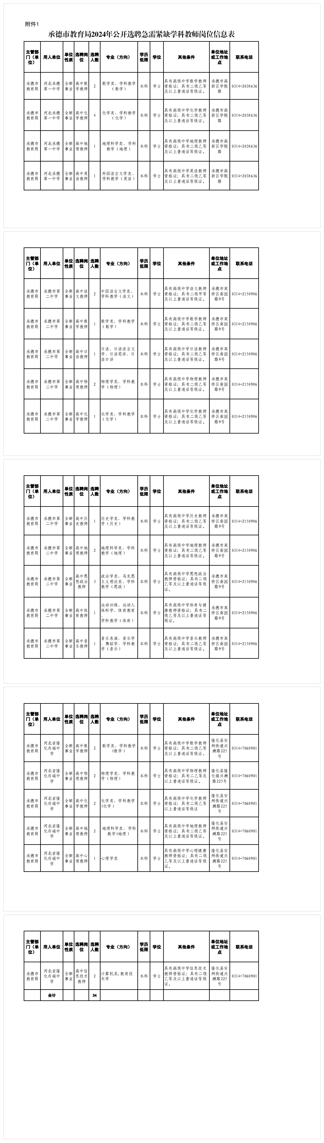 5.具备岗位所需要的其他条件。选聘岗位所需的具体条件按《承德市教育局2024年公开选聘急需紧缺学科教师岗位信息表》要求确定,凡涉及到年龄、工作时间以及学历等需要进一步确定时间的,具体时间计算日期截止到选聘《公告》发布之日。