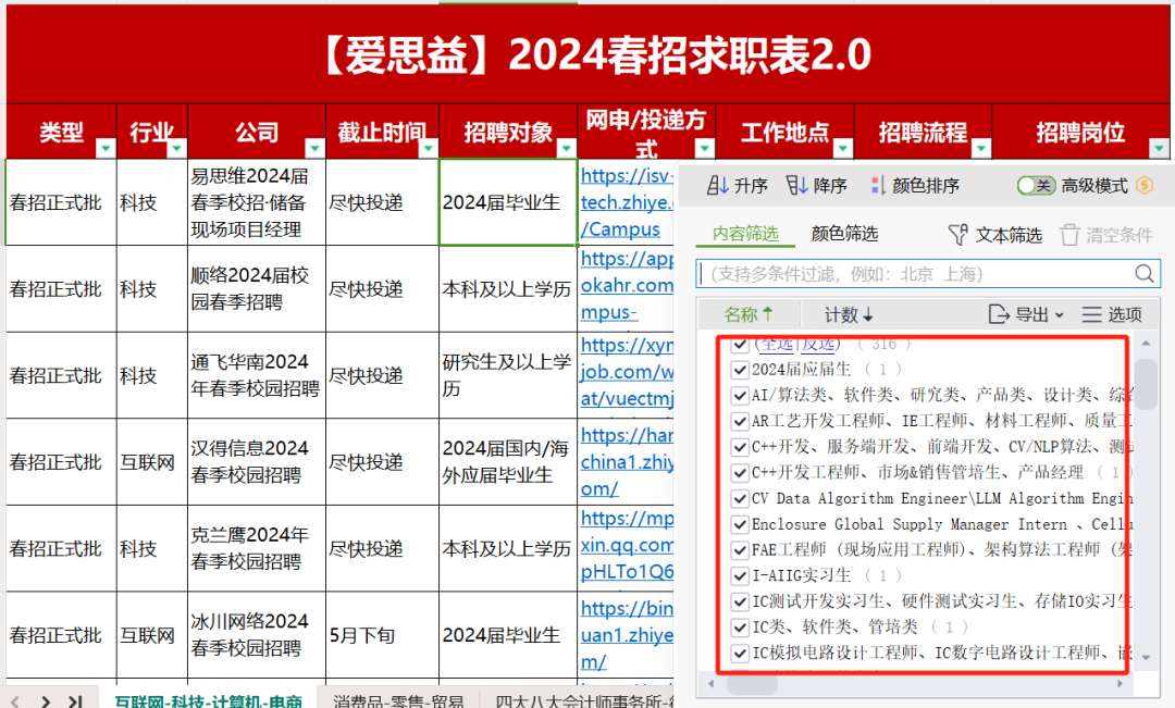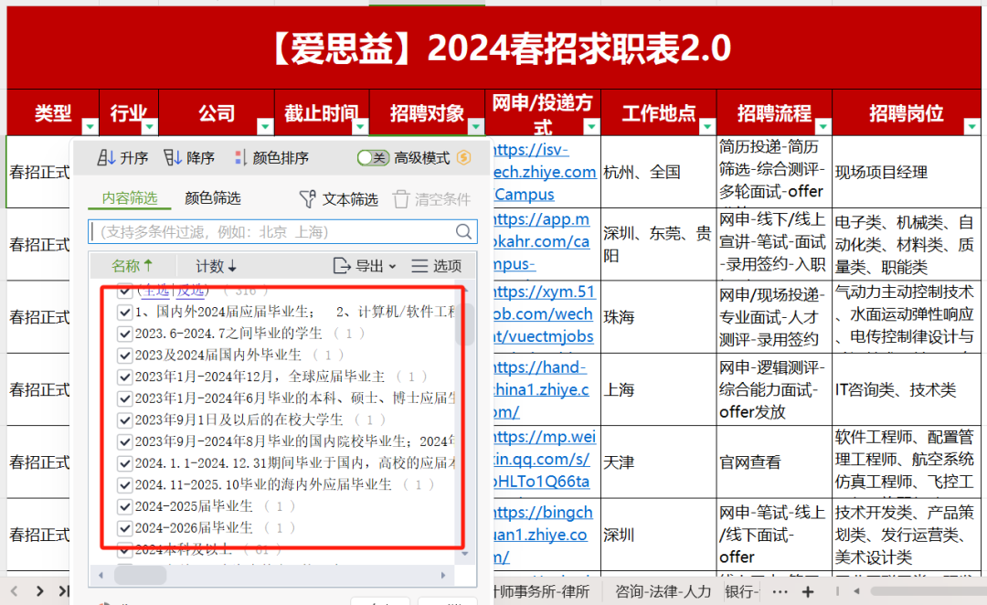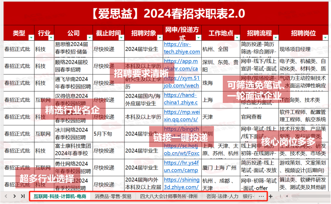 !但是拥有此表后,你便可以省去大量找资讯的时间,自行安排投递&笔面试,该抢先抢先、该错开错开,游刃有余~