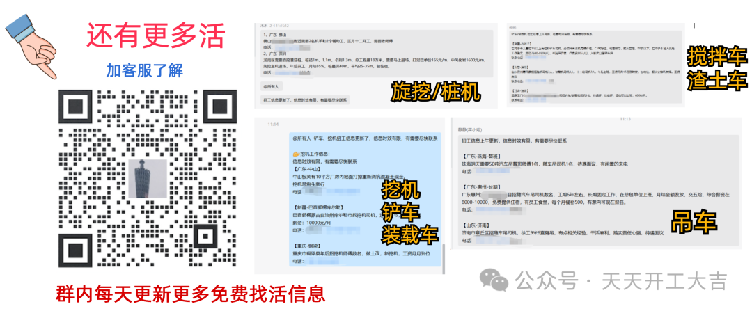 以上招聘信息来源于网络,如招工信息已满,电话异常、信息不实等,请及时留言反馈,感谢大家共同维护,祝天天开工大吉!
