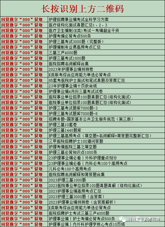 更多地区护士招聘信息、备考资料