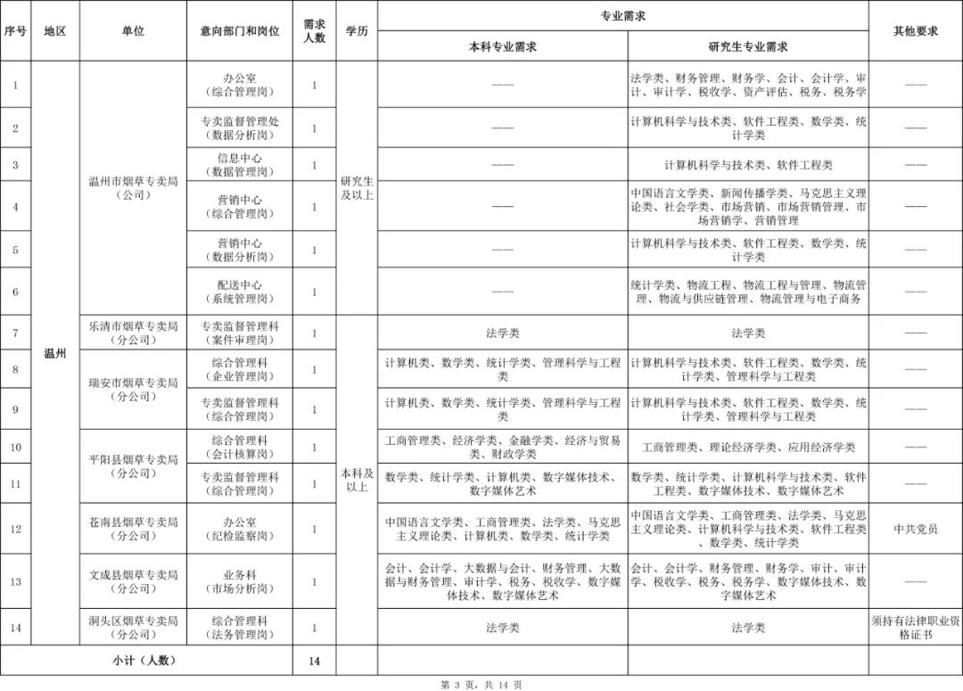 招聘 | 浙江省烟草专卖局(公司)招聘工作人员142名(3月29日前报名)