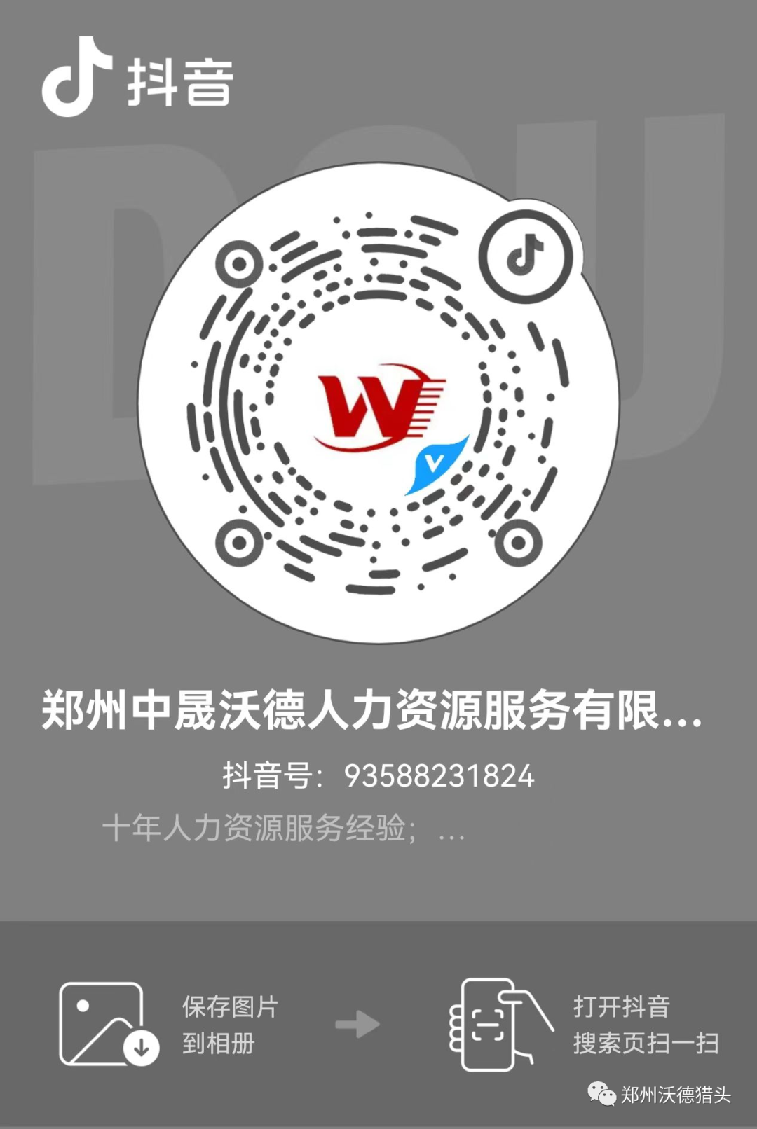 中晟沃德抖音企业号成立啦!保存图片打开抖音扫一扫即可关注,更多岗位讯息等你来~