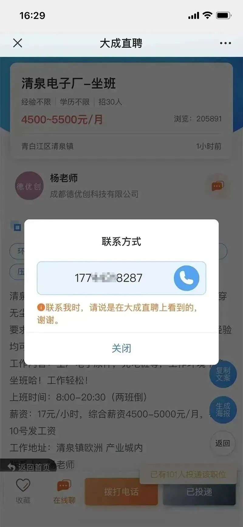 特别说明:本贴内容来自大成直聘公开信息收录,不对其真伪作任何担保,请求职者自行联系,谨慎识别。